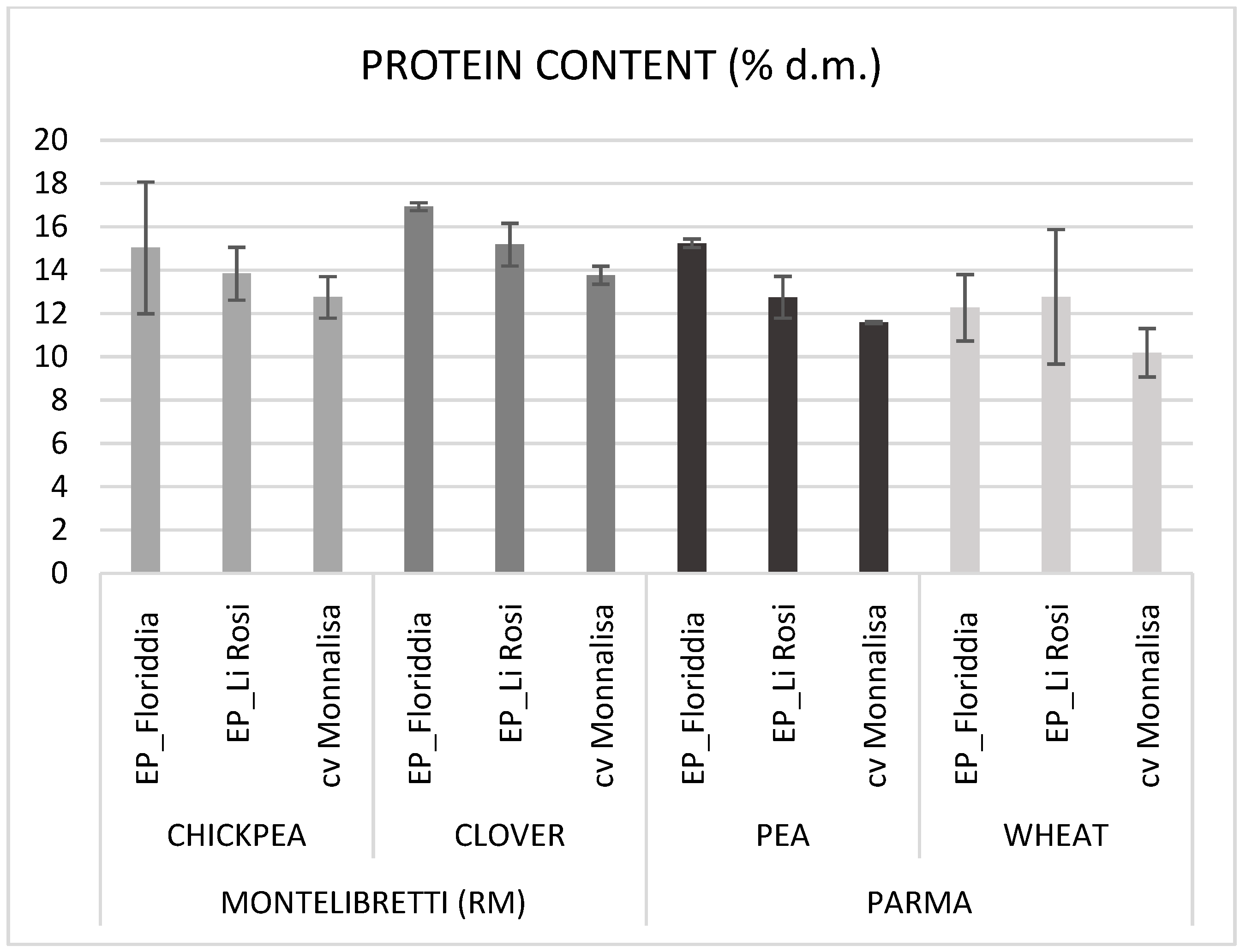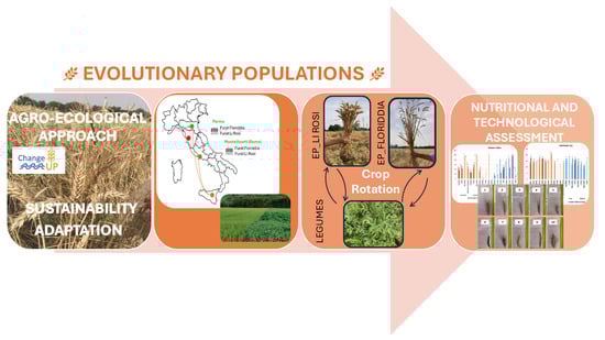 - Spaggiari, M.; Marchini, M.; Calani, L.; Dodi, R.; Di Pede, G.; Dall’Asta, M.; Scazzina, F.; Barbieri, A.; Righetti, L.; Folloni, S.; et al. Evolutionary Wheat Populations in High-Quality Breadmaking as a Tool to Preserve Agri-Food Biodiversity. Foods 2022, 11, 495. [Google Scholar] [CrossRef] [PubMed]