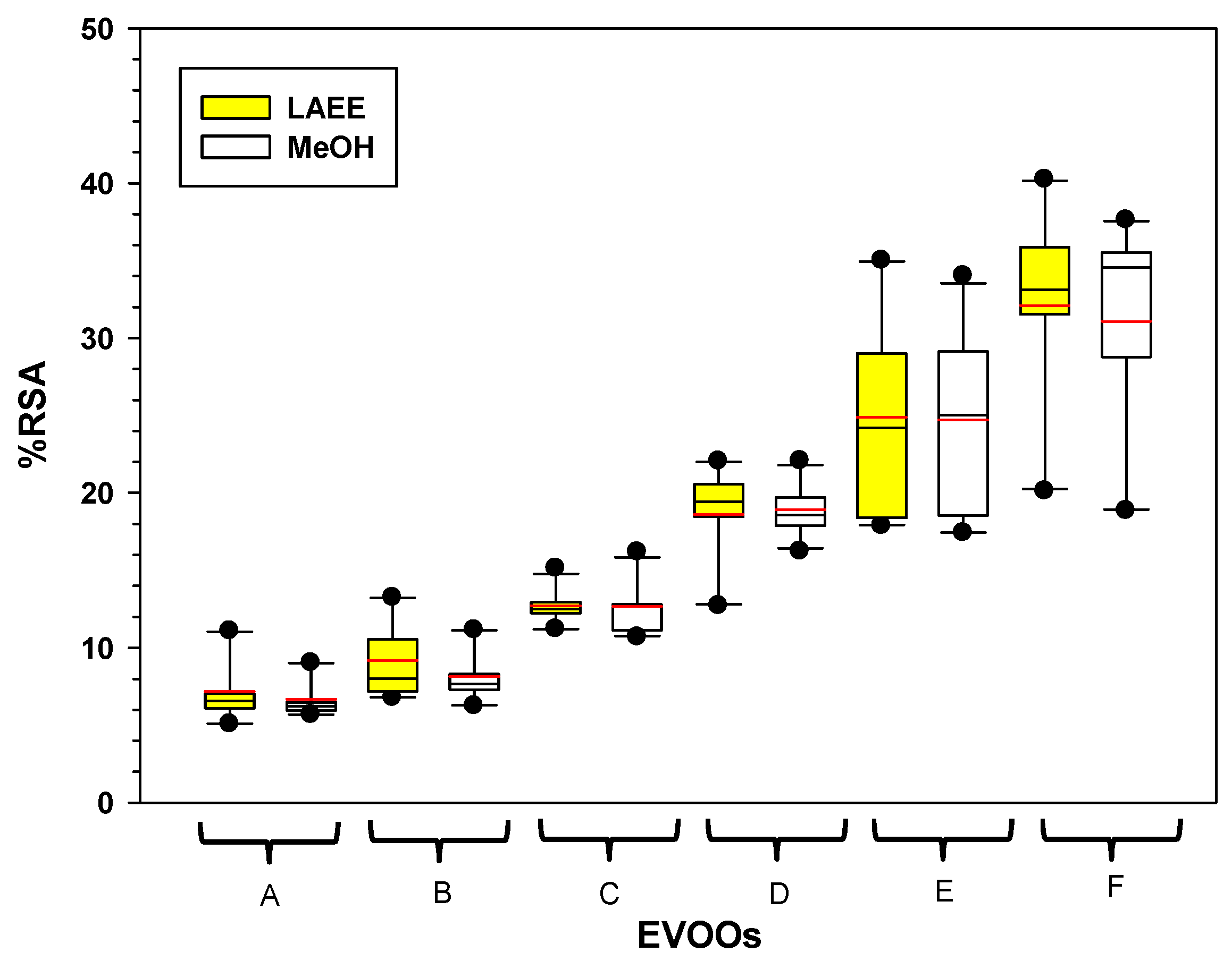 3.2. RSA Antioxidant Activity