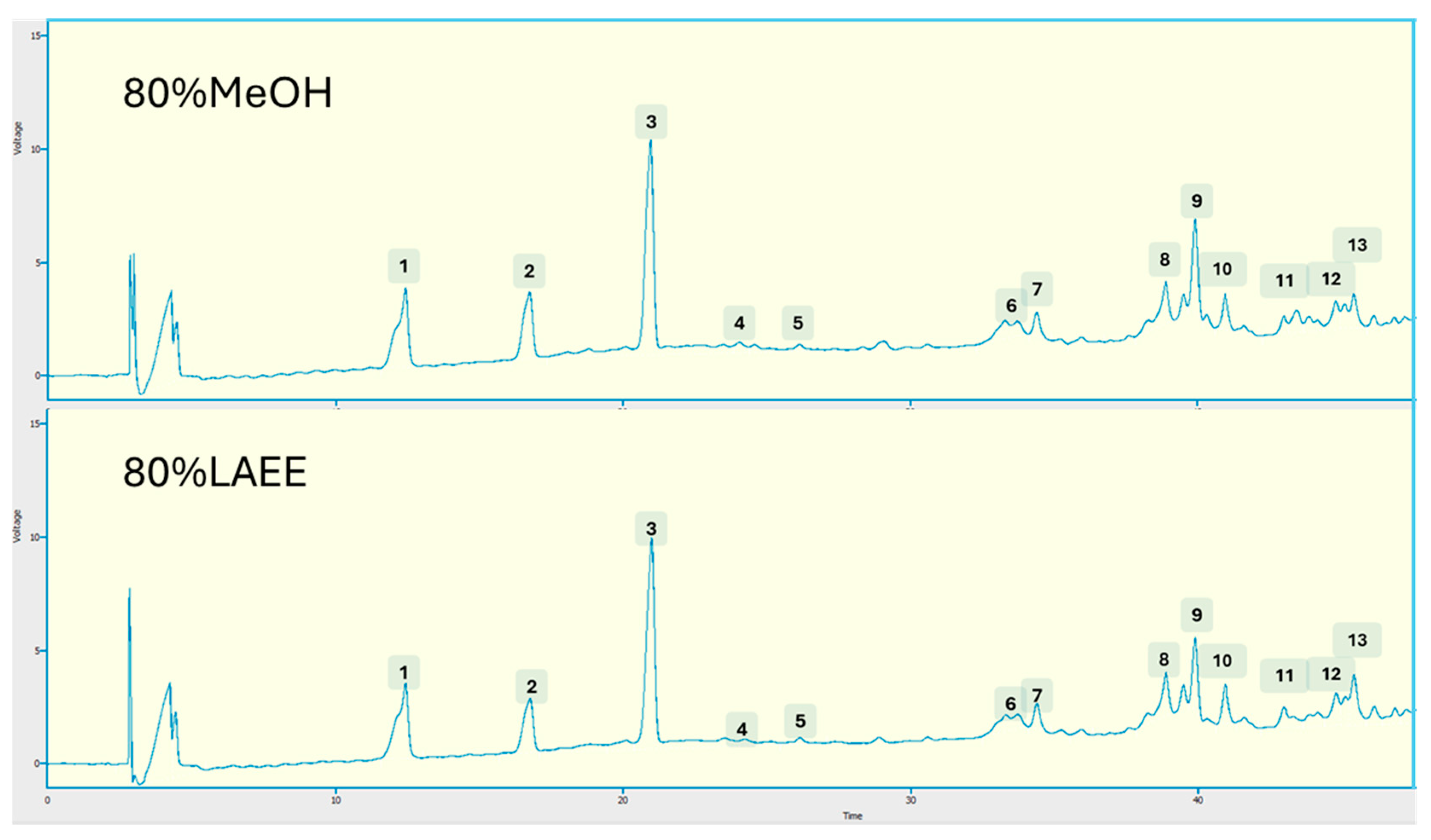 - Shi, L.; Zhao, W.; Yang, Z.; Subbiah, V.; Suleria, H.A.R. Extraction and characterization of phenolic compounds and their potential antioxidant activities. Environ Sci. Pollut. Res. 2022, 29, 81112–81129. [Google Scholar] [CrossRef]
