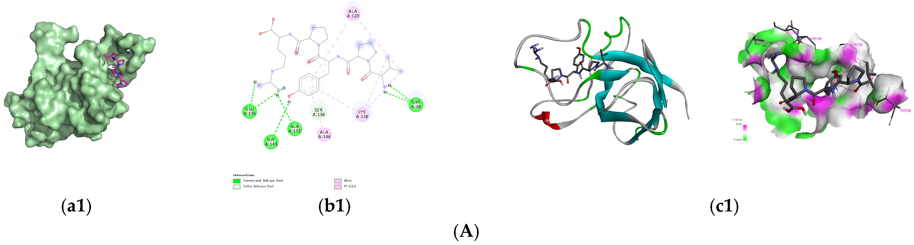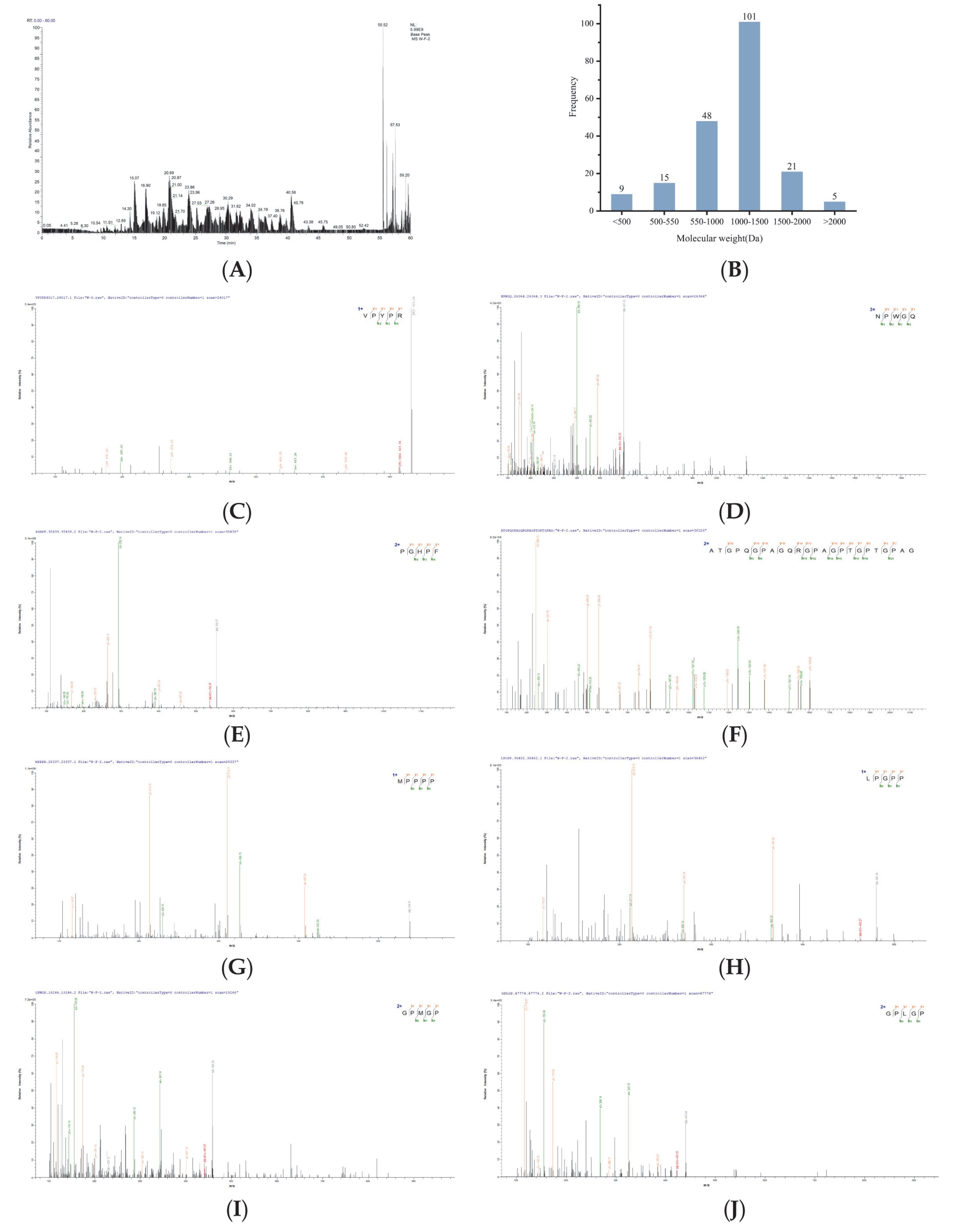 2.5. Peptide Sequence Identification and Virtual Screening