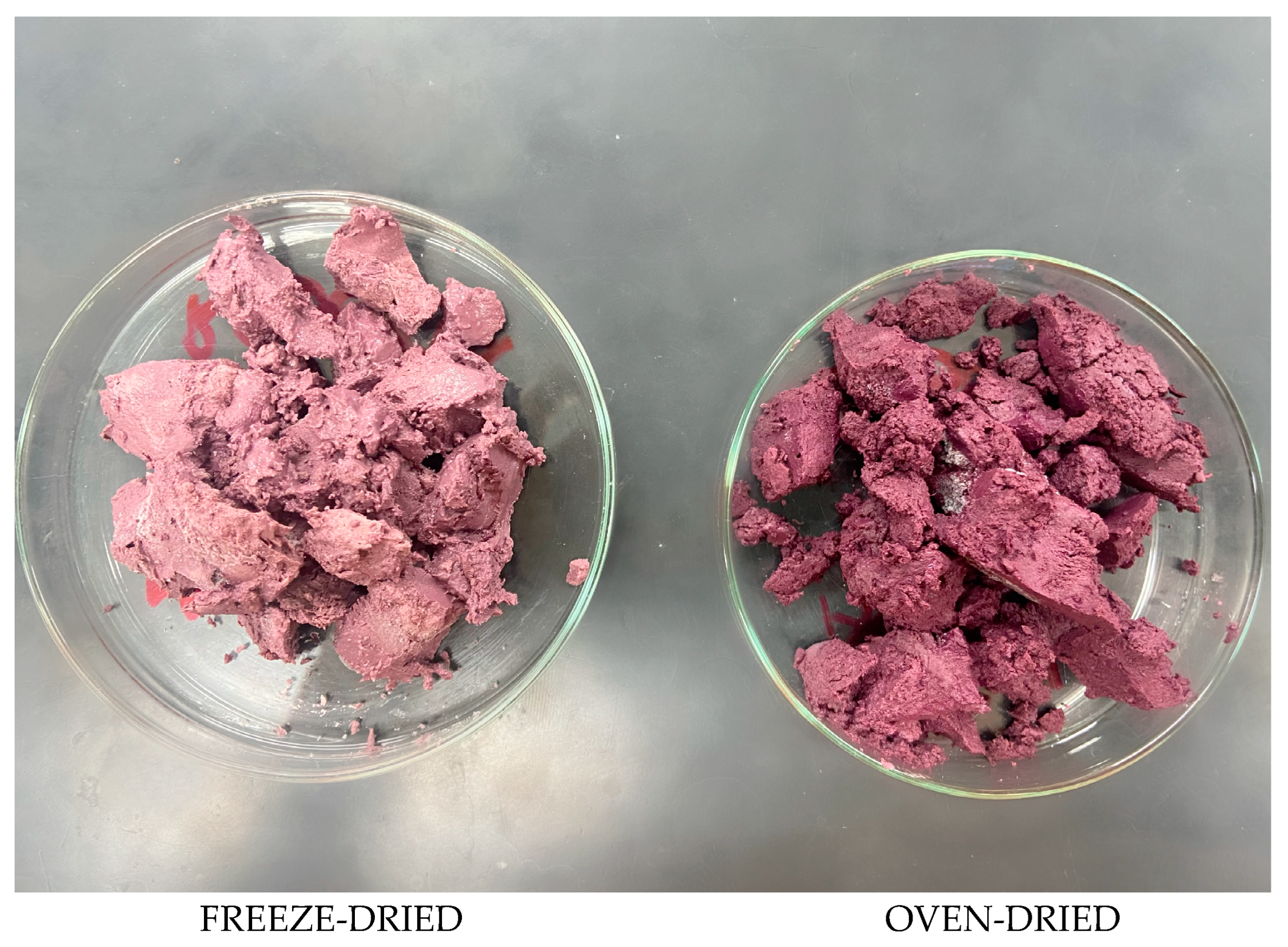 - de Torres, C.; Díaz-Maroto, M.C.; Hermosín-Gutiérrez, I.; Pérez-Coello, M.S. Effect of Freeze-Drying and Oven-Drying on Volatiles and Phenolics Composition of Grape Skin. Anal. Chim. Acta 2010, 660, 177–182. [Google Scholar] [CrossRef]