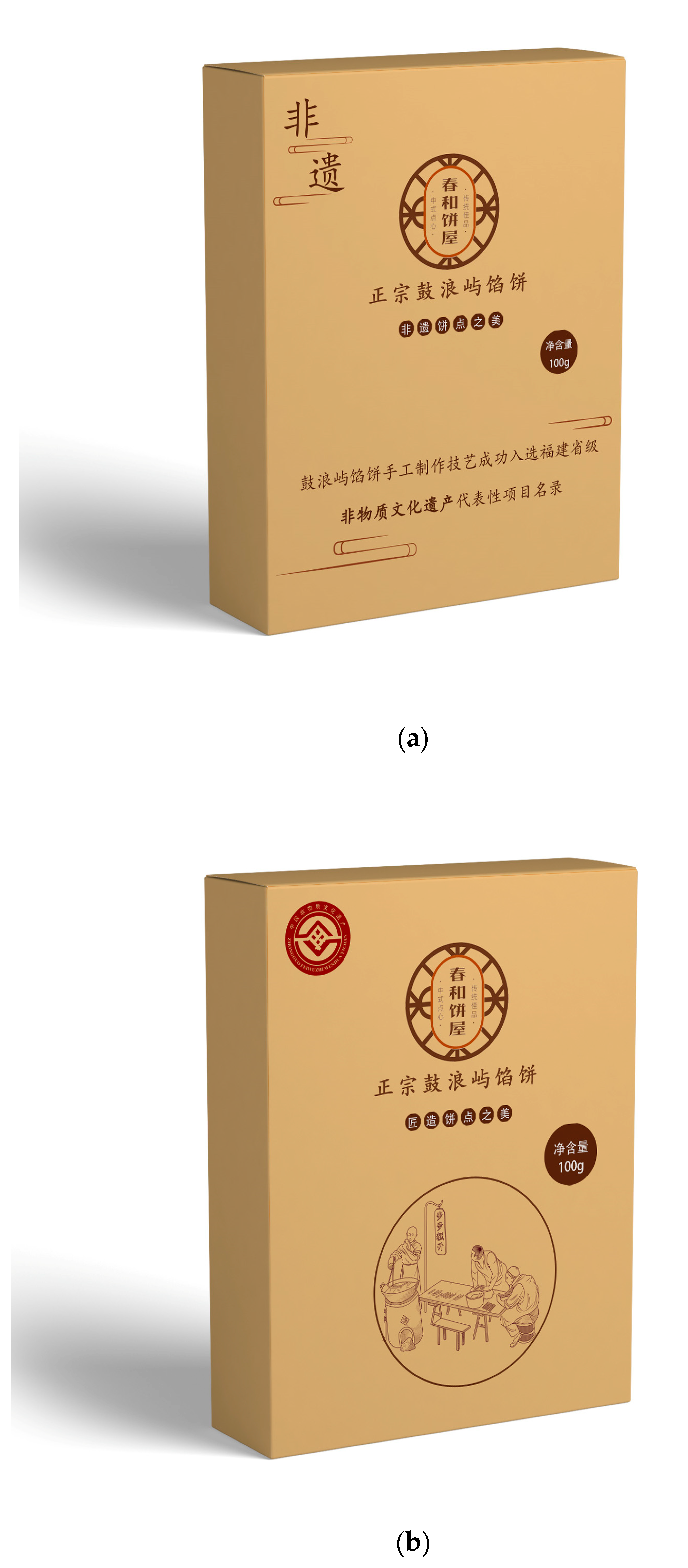 - Zu-zhou, Q.; Hui, Q.; Yun, L. Packaging design of intangible cultural heritage food based on the characteristics of traditional folk houses in east Fujian. Food Mach. 2022, 38, 138–143. [Google Scholar] [CrossRef]