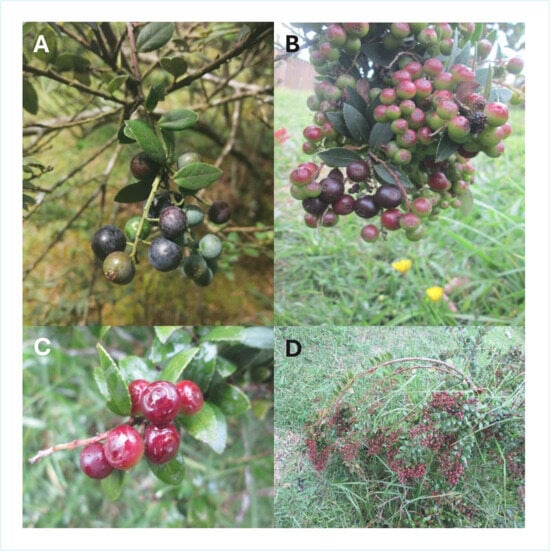 Despite this berry’s beneficial properties, research on its efficient and sustainable production remains limited, underscoring the lack of preclinical and clinical studies validating its effects. A better understanding of its agronomic requirements is necessary to develop cultivation systems under suitable climatic conditions that maximize its genetic potential []. However, morphological and genetic variability within wild populations suggests broad potential for selection and genetic improvement, which could enhance cultivation and commercialization worldwide. In terms of conservation, it faces challenges due to insufficient harvesting practices and human pressure on its natural habitat, which could result in genetic erosion of the species.