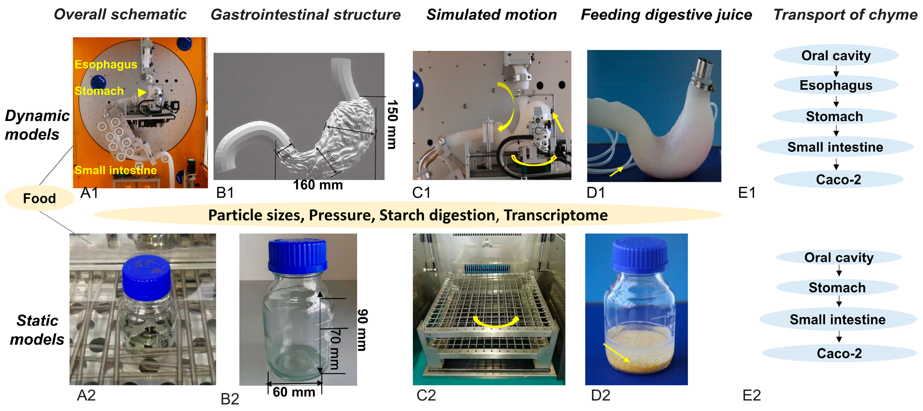 - Li, Y.; Kong, F. Simulating human gastrointestinal motility in dynamic in vitro models. Compr. Rev. Food Sci. Food Saf. 2022, 21, 3804–3833. [Google Scholar] [CrossRef]