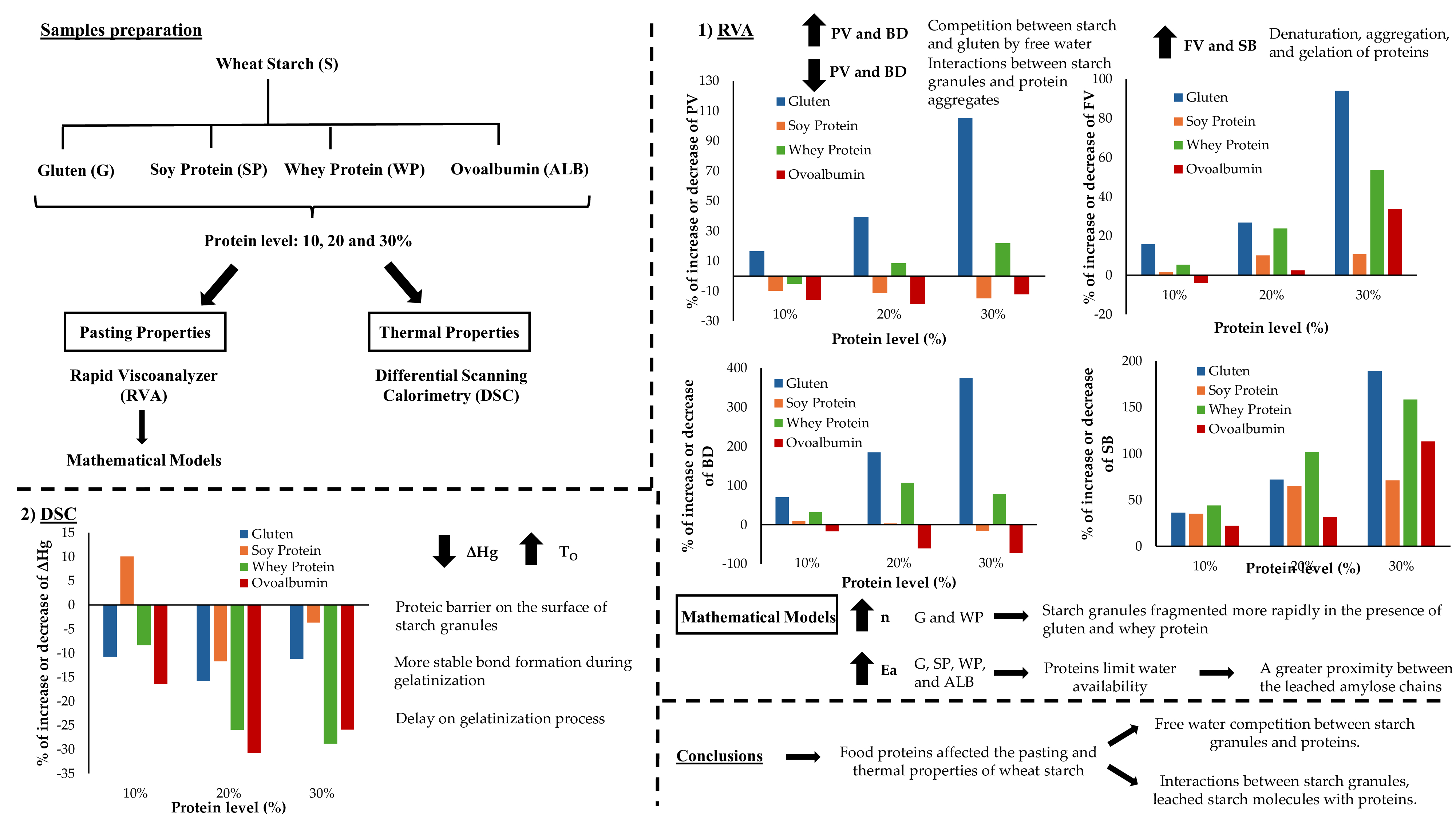 - Ribotta, P.D.; Colombo, A.; León, A.E.; Añón, M.C. Effects of soy protein on the gelatinization of wheat starch and the rheological properties of their composites. J. Sci. Food Agric. 2007, 87, 1429–1436. [Google Scholar] [CrossRef]