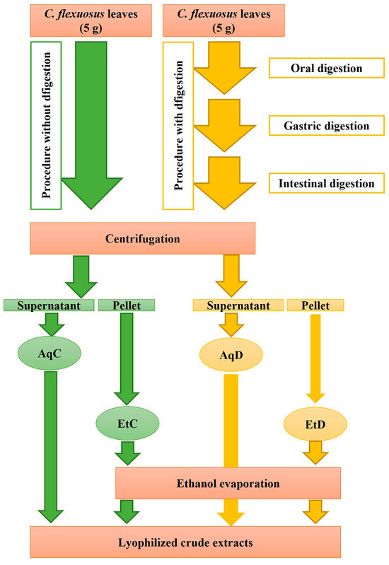 Accordingly, the objective of the present study was to characterize C. flexuosus leaf extracts and to evaluate the bioaccessibility and recovery of phenolic compounds, as well as their antioxidant, antidiabetic, and cytotoxic properties, following the GID protocol.