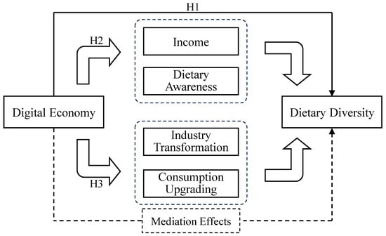 The preceding analysis of the digital economy and dietary diversity has led to the formulation of our research framework (Figure 1).