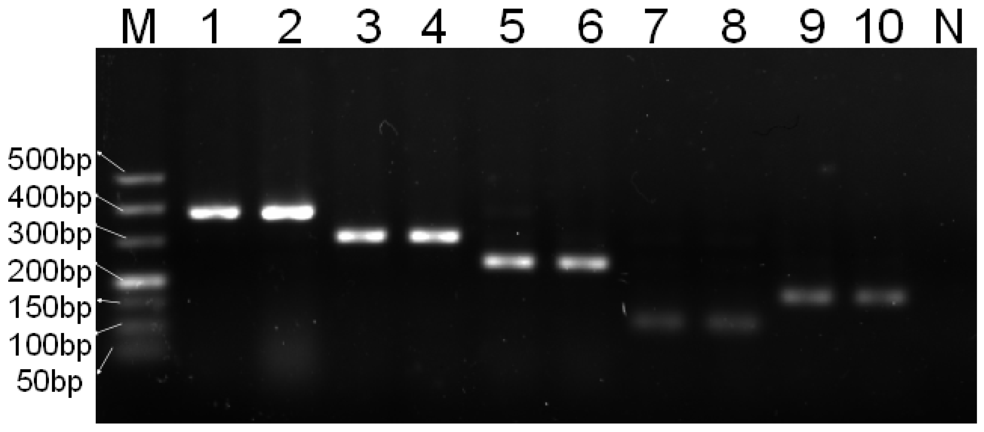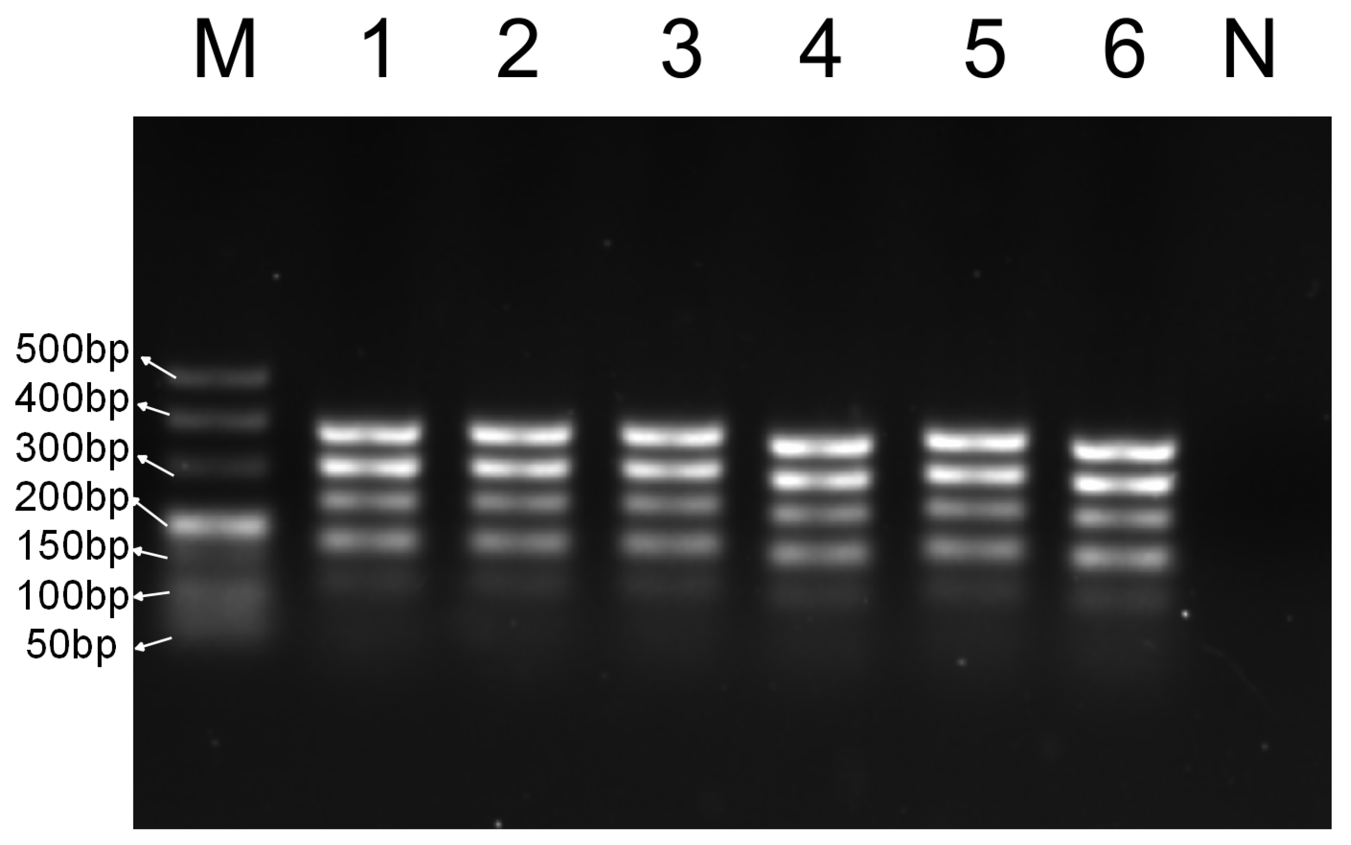 3.1. Optimization Ressult of Multiplex PCR Annealing Temperature