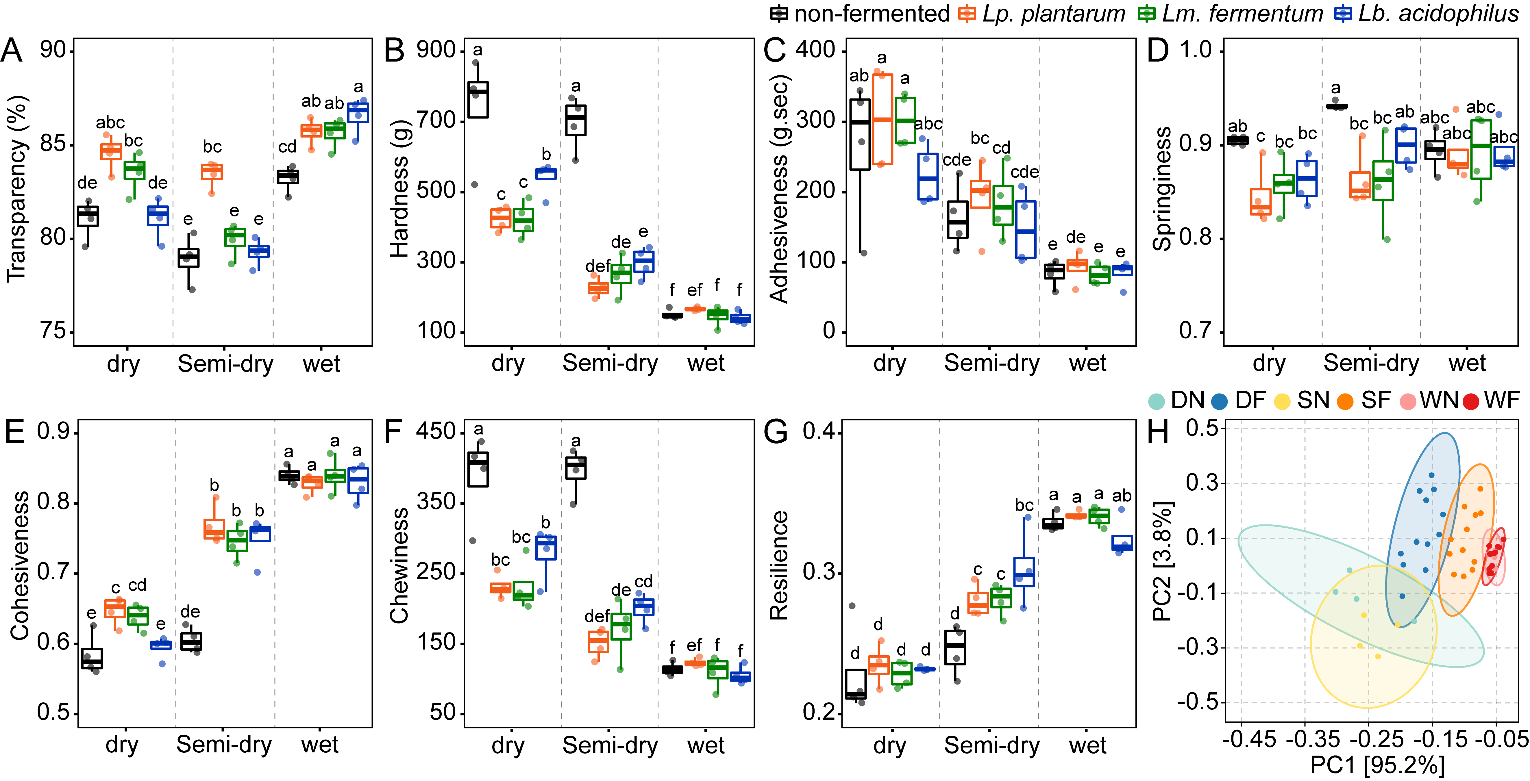 - Qi, W.; Ma, C.M.; Xing, W.J.; Yang, Y.; Fan, J.; Yang, C.H.; Zhang, N. Effect of Lactobacillus acidophilus fermentation on the quality of glutinous rice products. Starch-Stärke 2023, 75, 2200193. [Google Scholar] [CrossRef]