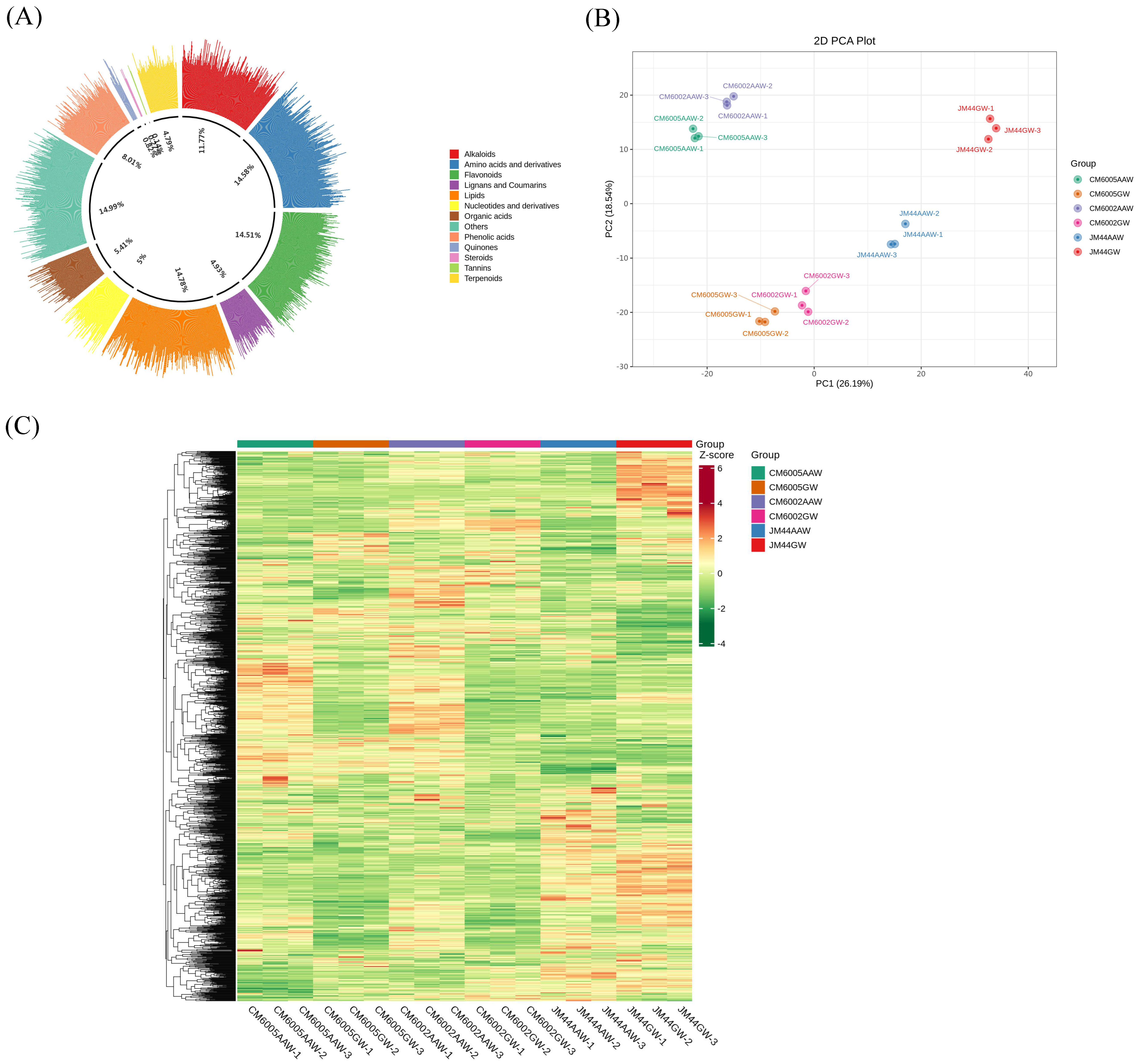 4.1. Differential Metabolites of AAW and GW