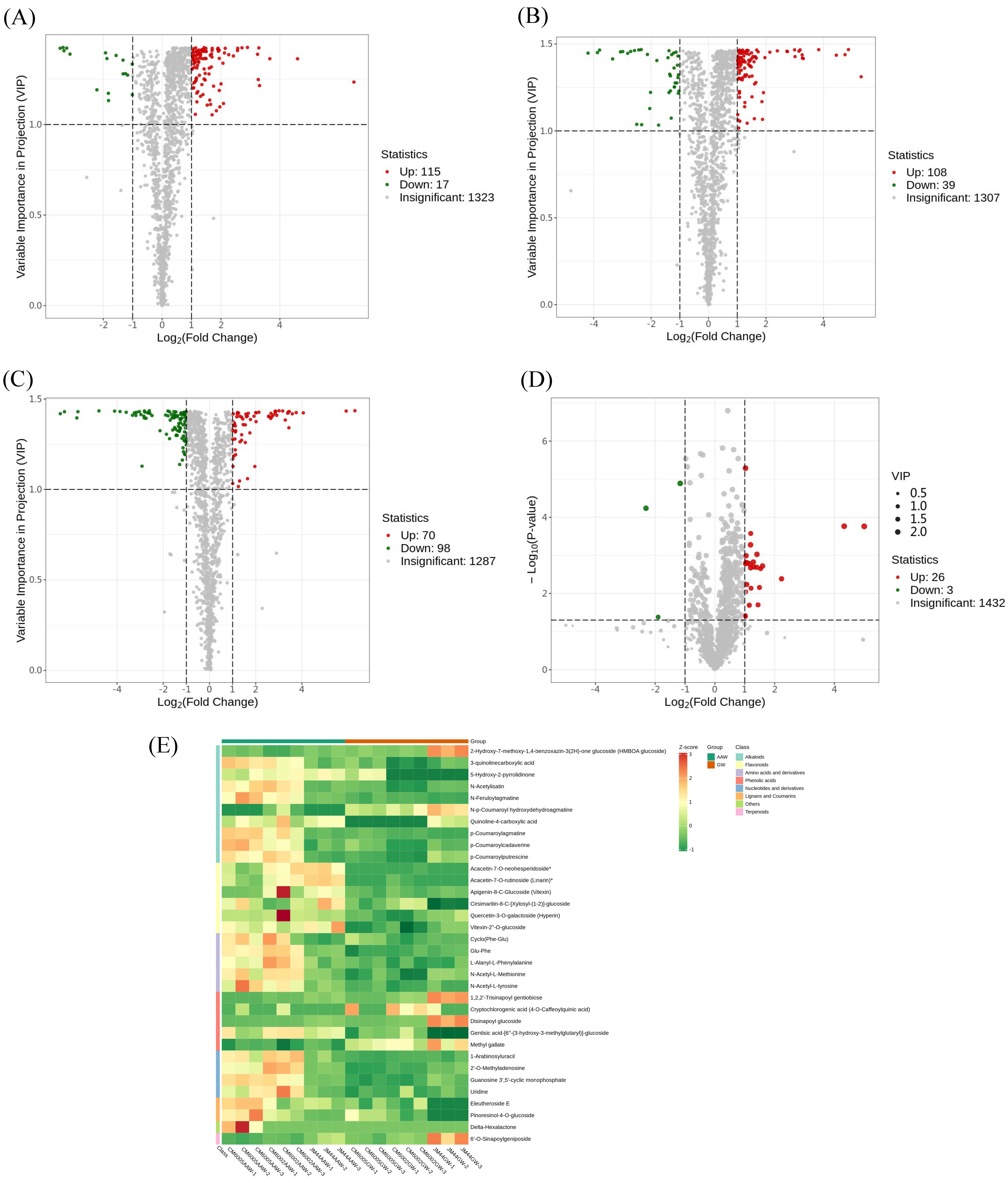 | 31 | Disinapoyl glucoside | - | Phenolic acids | Phenolic acids | down |