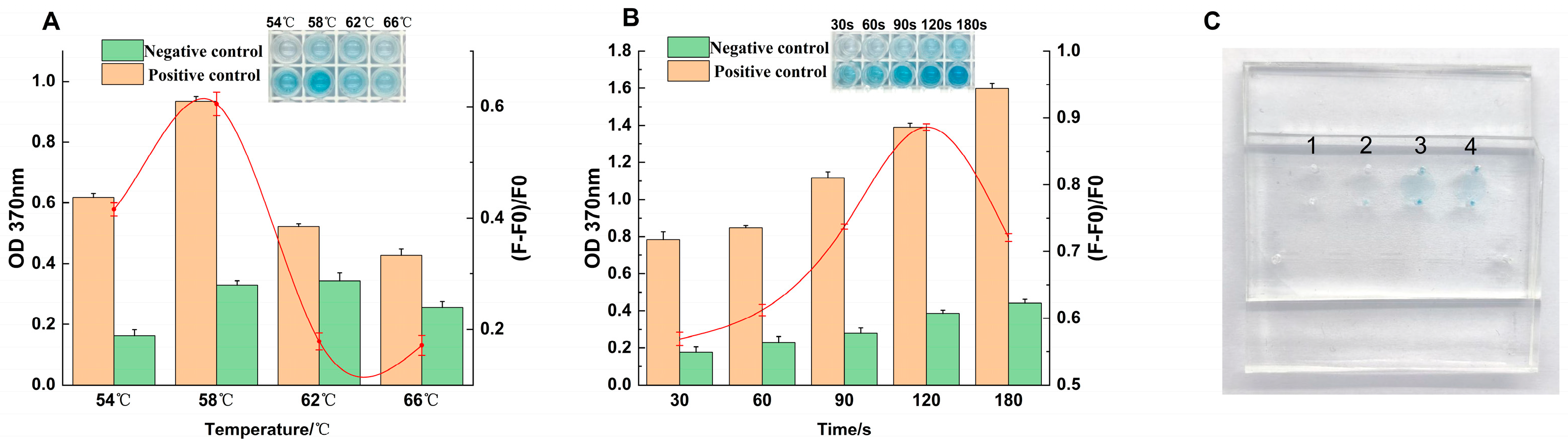 Figure 2D). The temperature gradient experiment confirmed that 58 °C was the ideal reaction temperature, as signal intensity decreased significantly beyond this point (