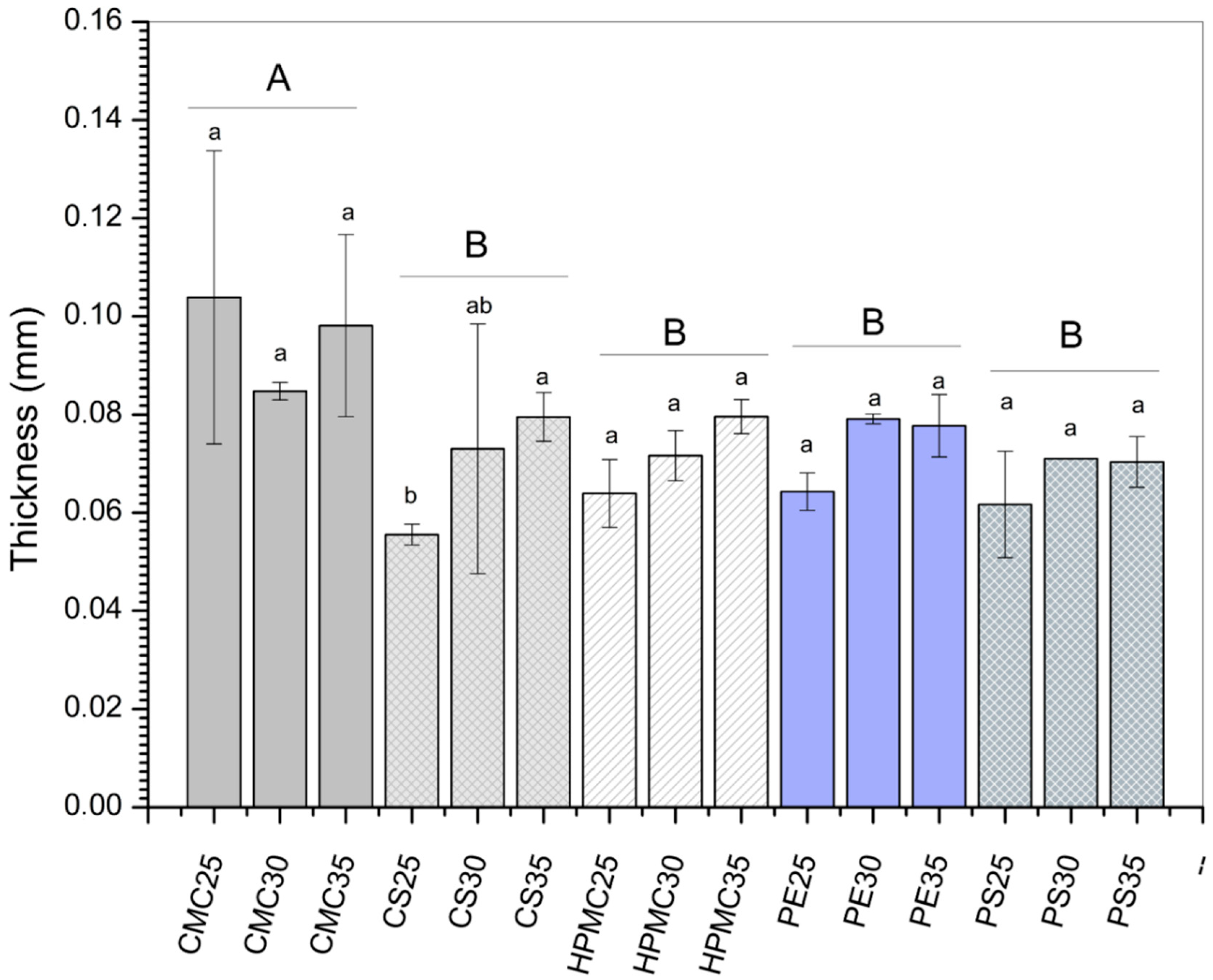 - Ballesteros-Mártinez, L.; Pérez-Cervera, C.; Andrade-Pizarro, R. Effect of Glycerol and Sorbitol Concentrations on Mechanical, Optical, and Barrier Properties of Sweet Potato Starch Film. NFS J. 2020, 20, 1–9. [Google Scholar] [CrossRef]