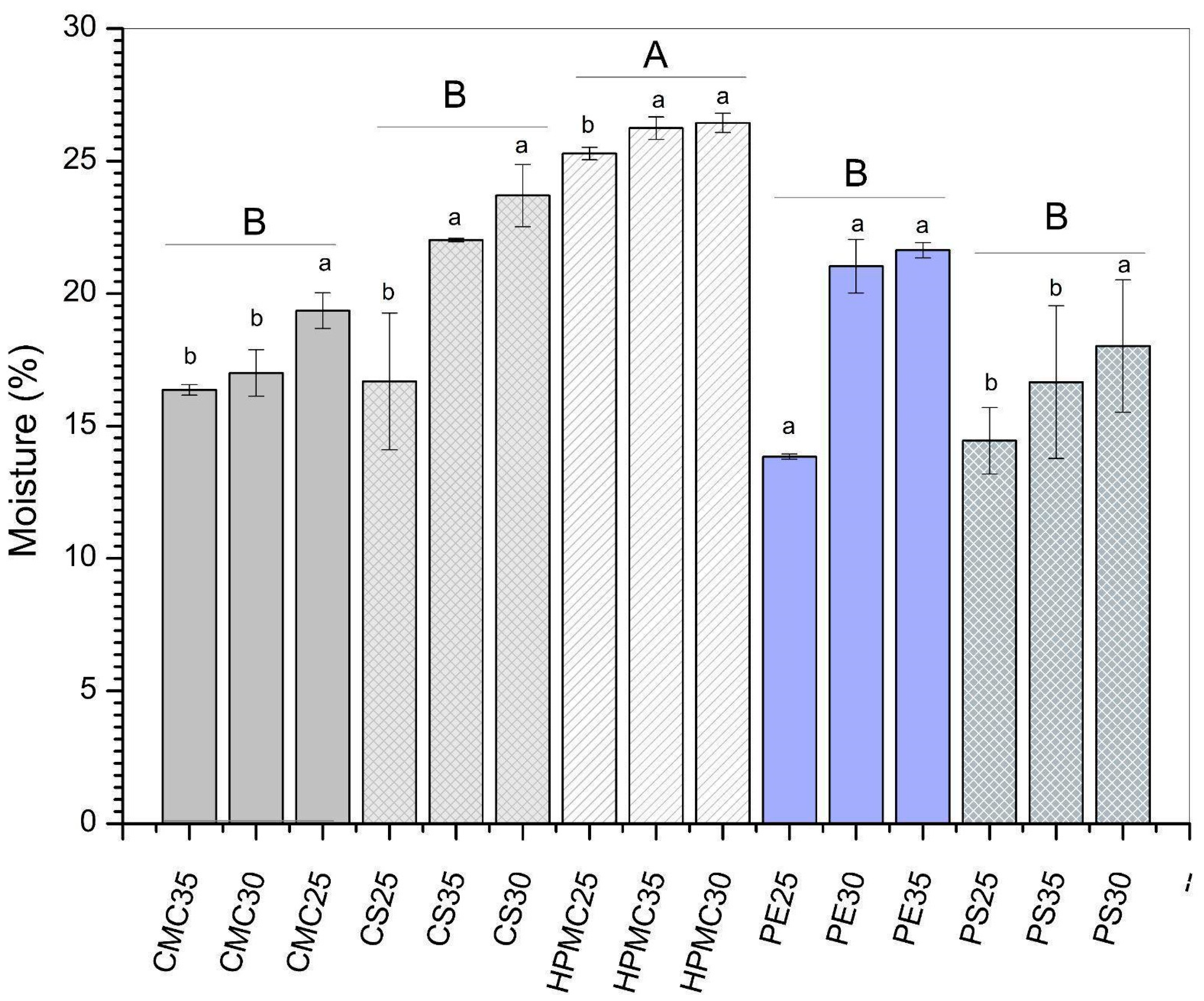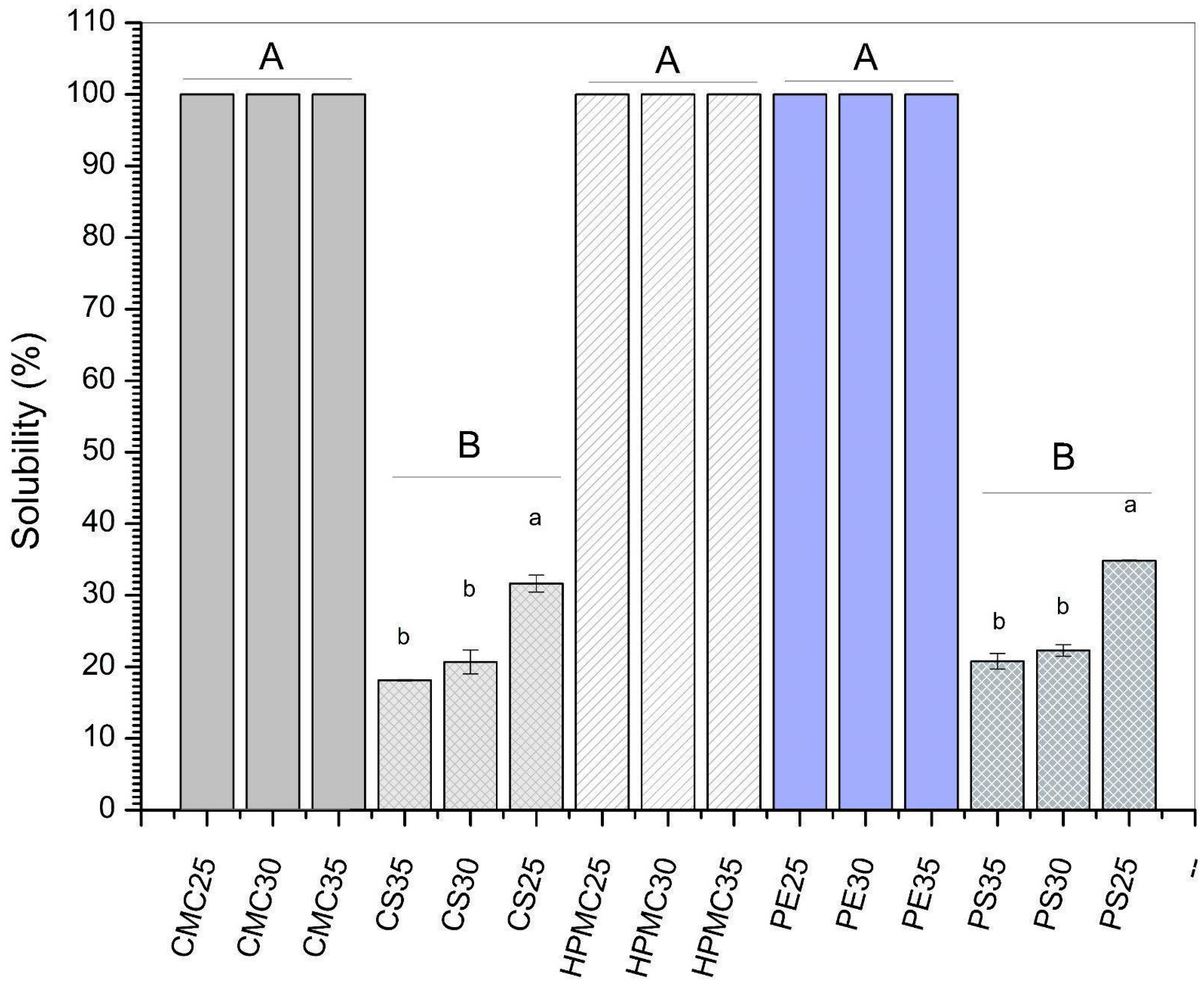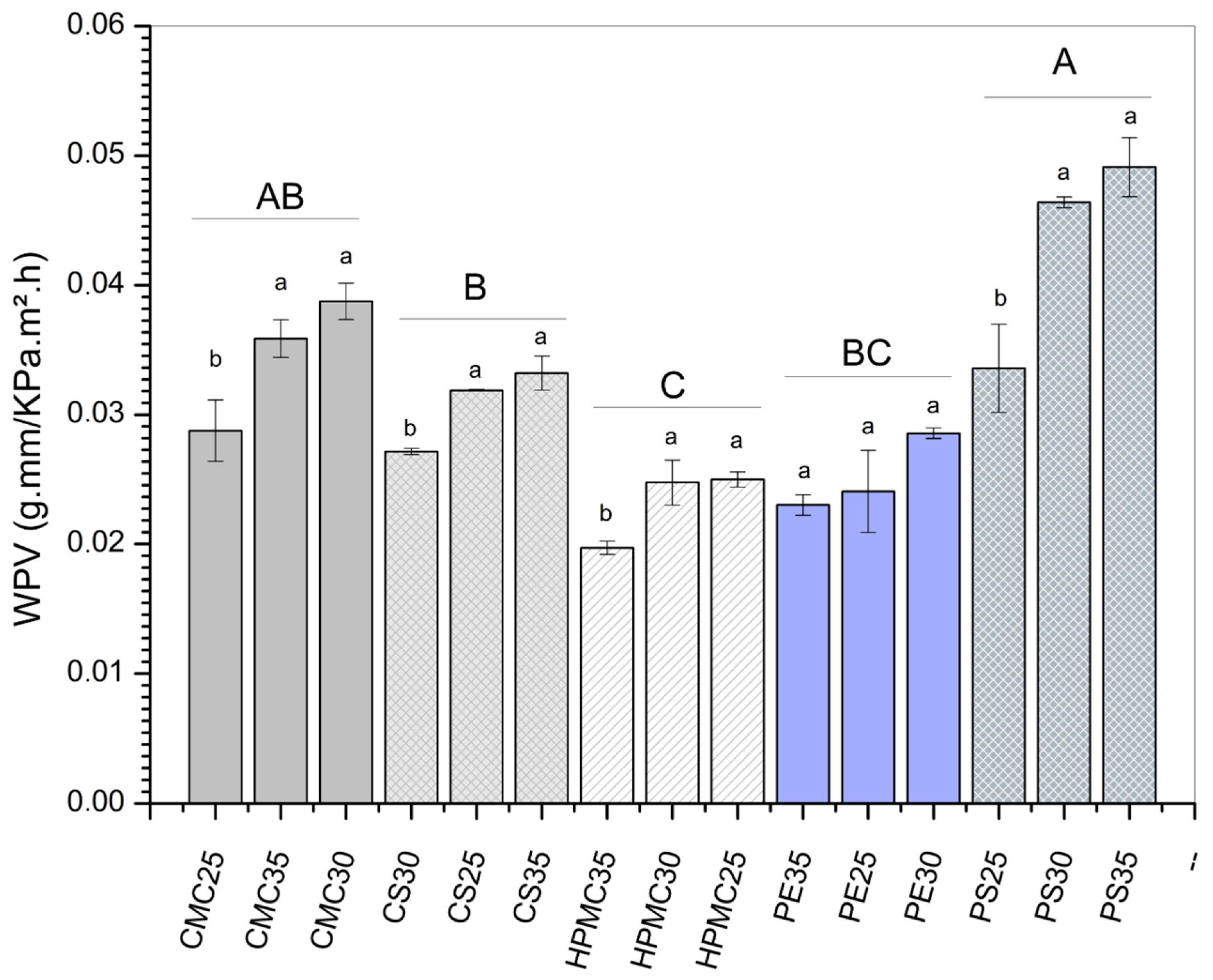 3.3. Solubility and Water Vapor Permeability (WVP)