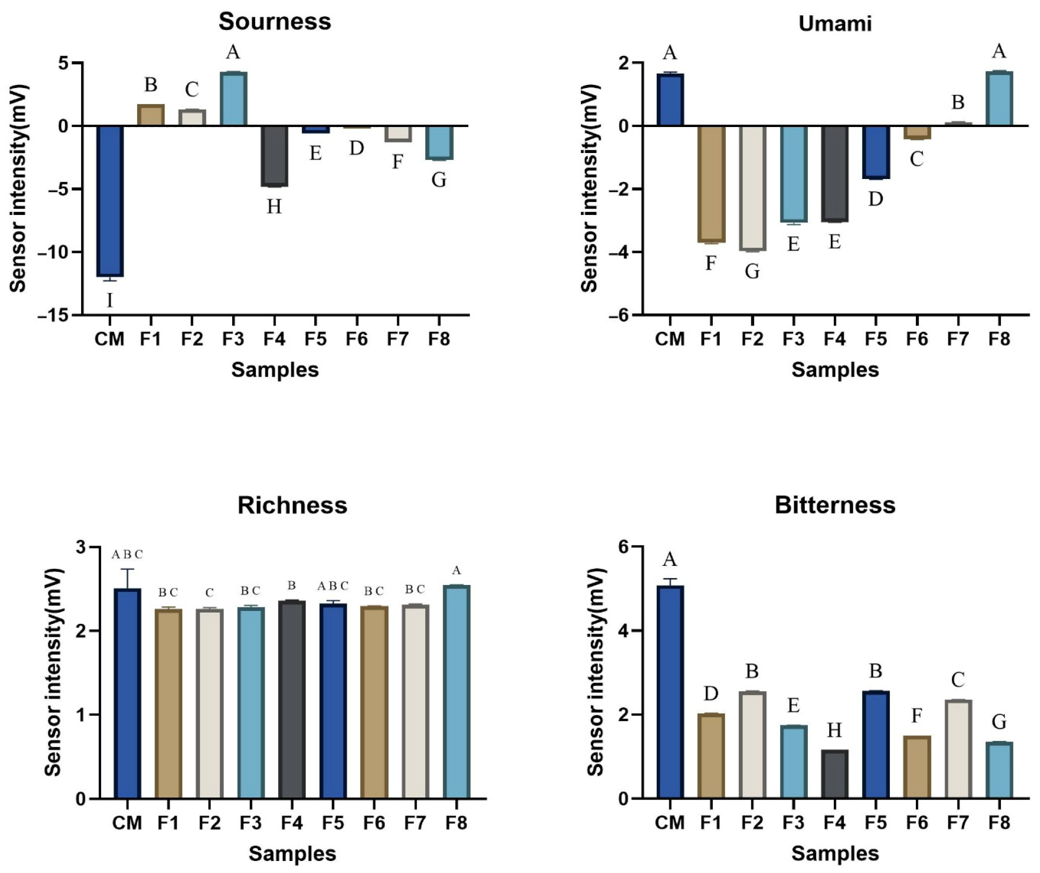 - Ismail, I.; Hwang, Y.-H.; Joo, S.-T. Low-temperature and long-time heating regimes on non-volatile compound and taste traits of beef assessed by the electronic tongue system. Food Chem. 2020, 320, 126656. [Google Scholar] [CrossRef]