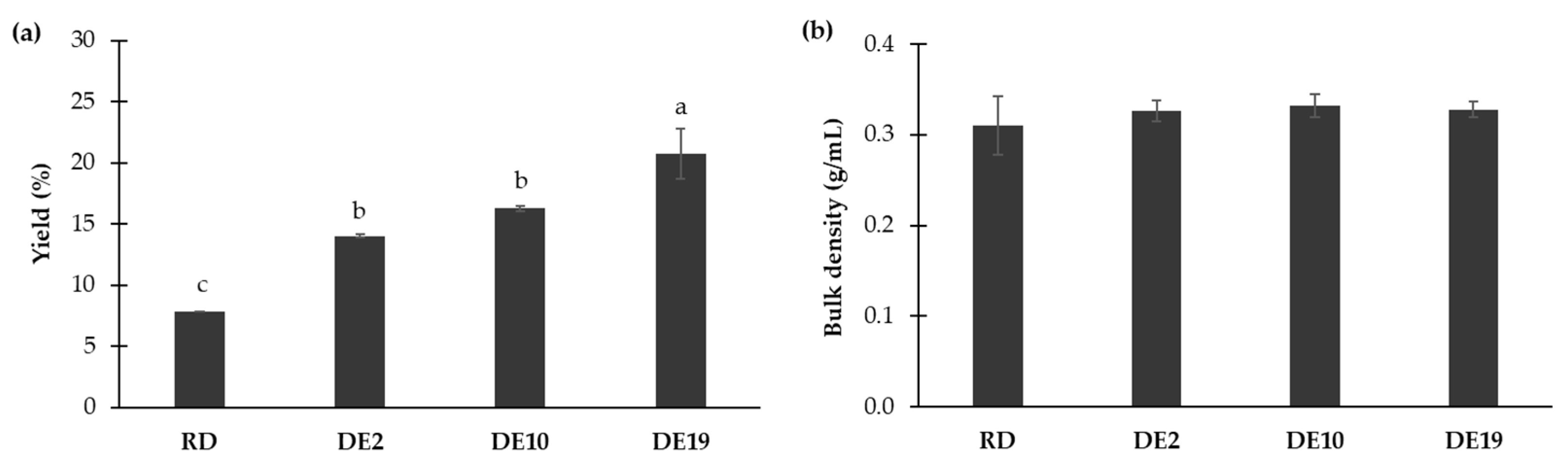 3.1. Yield and Bulk Density