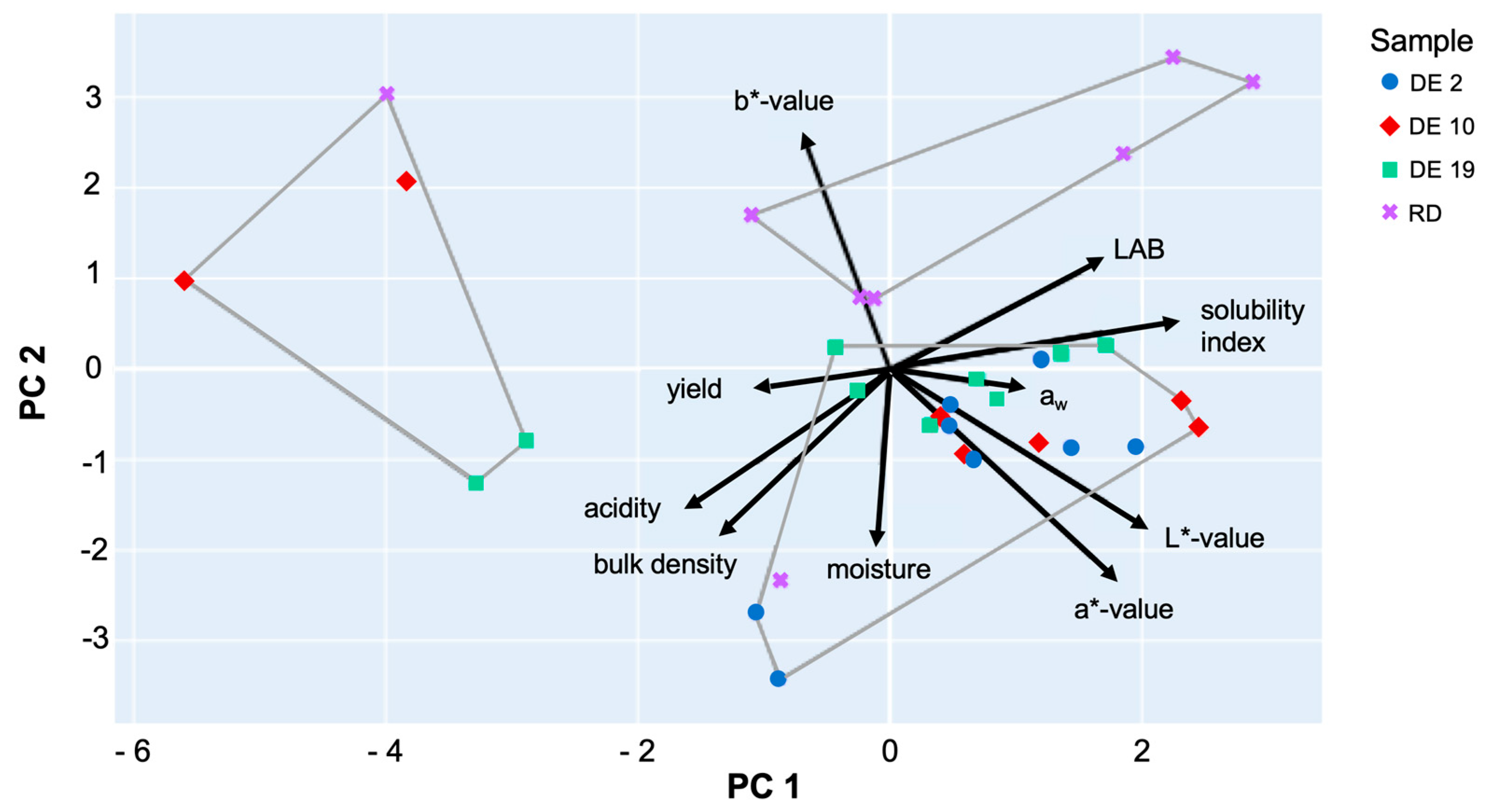 | DE 2 | 0.28 ± 0.02 a | 6.77 ± 0.03 a | 19.98 ± 1.12 |