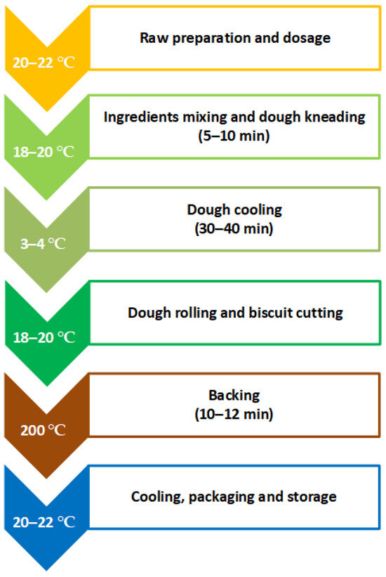 The stages of preparation for the salty butter biscuits with added AGP are given in Figure 1. Some of them are conducted at room temperature; refrigeration was used so as to avoid melting the butter. The total technological time to prepare the butter biscuits is 2.5â3 h.