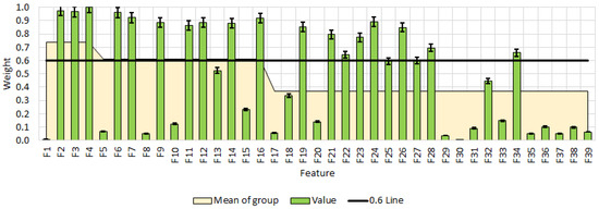 For the selection of the informative features, the RReliefF method was used. The ReliefF method registers relations between the features and is noise resilient. The features with a weight coefficient above 0.6 are considered as informative [44]. A vector was defined from the selected features. In this context, informative variables are those features that provide the most relevant and discriminative information for distinguishing among the analyzed samples, as identified by their high ReliefF weights.