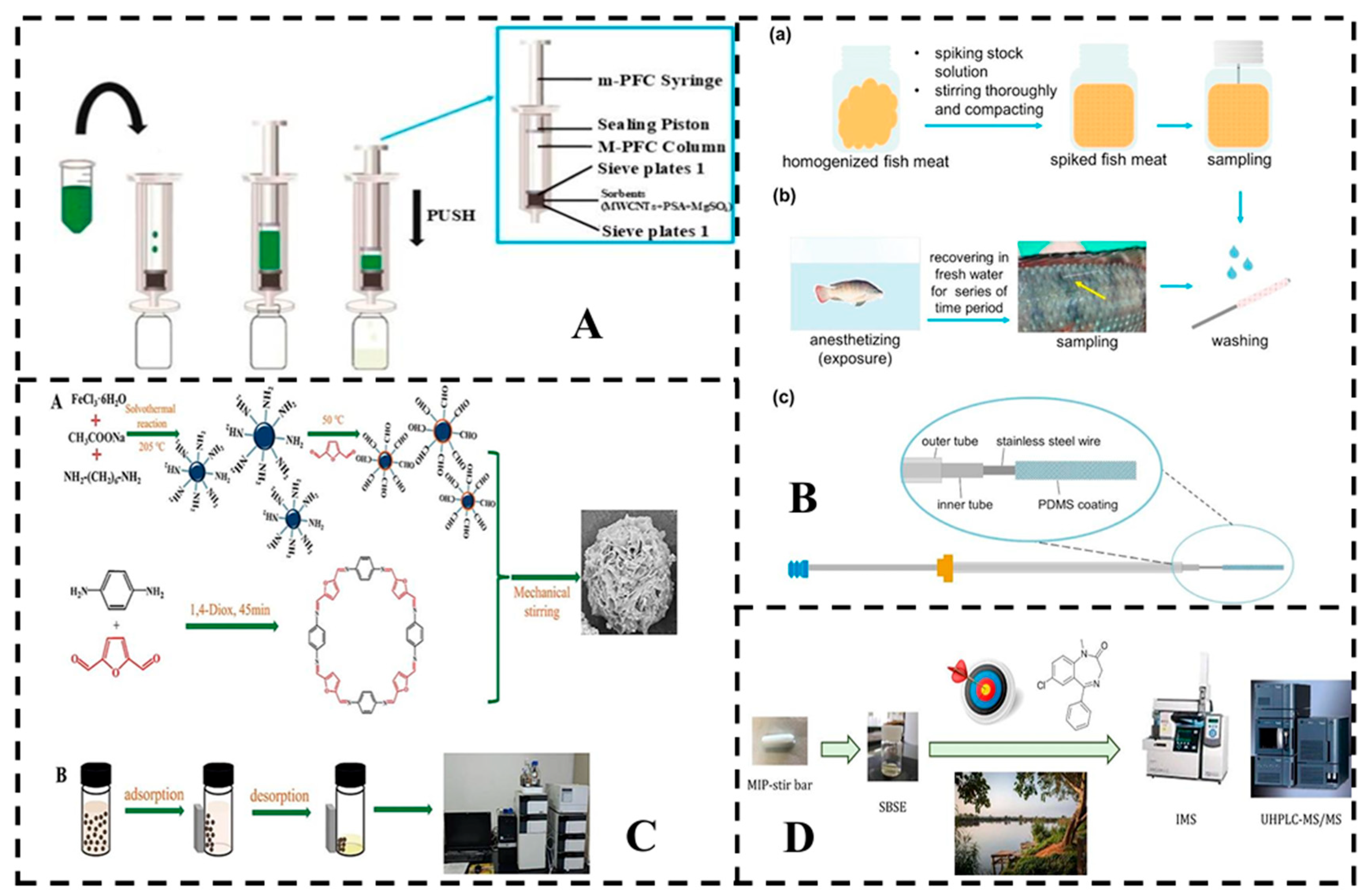 - Huang, S.Y.; Xu, J.Q.; Wu, J.Y.; Hong, H.J.; Chen, G.S.; Jiang, R.F.; Zhu, F.; Liu, Y.; Ouyang, G.F. Rapid detection of five anesthetics in tilapias by in vivo solid phase microextraction coupling with gas chromatography-mass spectrometry. Talanta 2017, 168, 263–268. [Google Scholar] [CrossRef]