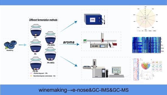 - Guo, Z.; Yang, H.; Min, Z.; Fang, Y. Research Progress in Aroma Compounds of Blueberry Wine and Their Influential Factors. Food Sci. 2024, 45, 337–343. [Google Scholar] [CrossRef]