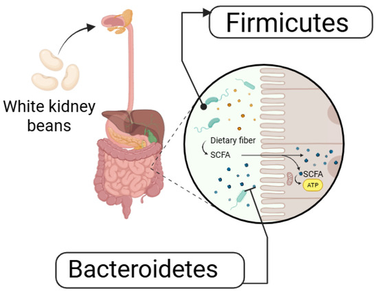 WKBE can also alter gut microbiota composition. In a randomized, placebo-controlled crossover trial, Houghton et al. (2023) [72] assessed gut microbiota composition, gastrointestinal inflammation, and stool characteristics in 20 healthy individuals following seven days of white kidney bean (WKB) consumption. WKBE administration elevated the relative abundance of Firmicutes while reducing that of Bacteroidetes as shown in Figure 4 [72]. However, no significant differences were observed in digestive symptoms, stool frequency, or fecal calprotectin between the placebo and WKBE groups, indicating minimal effects on gastrointestinal health [73].