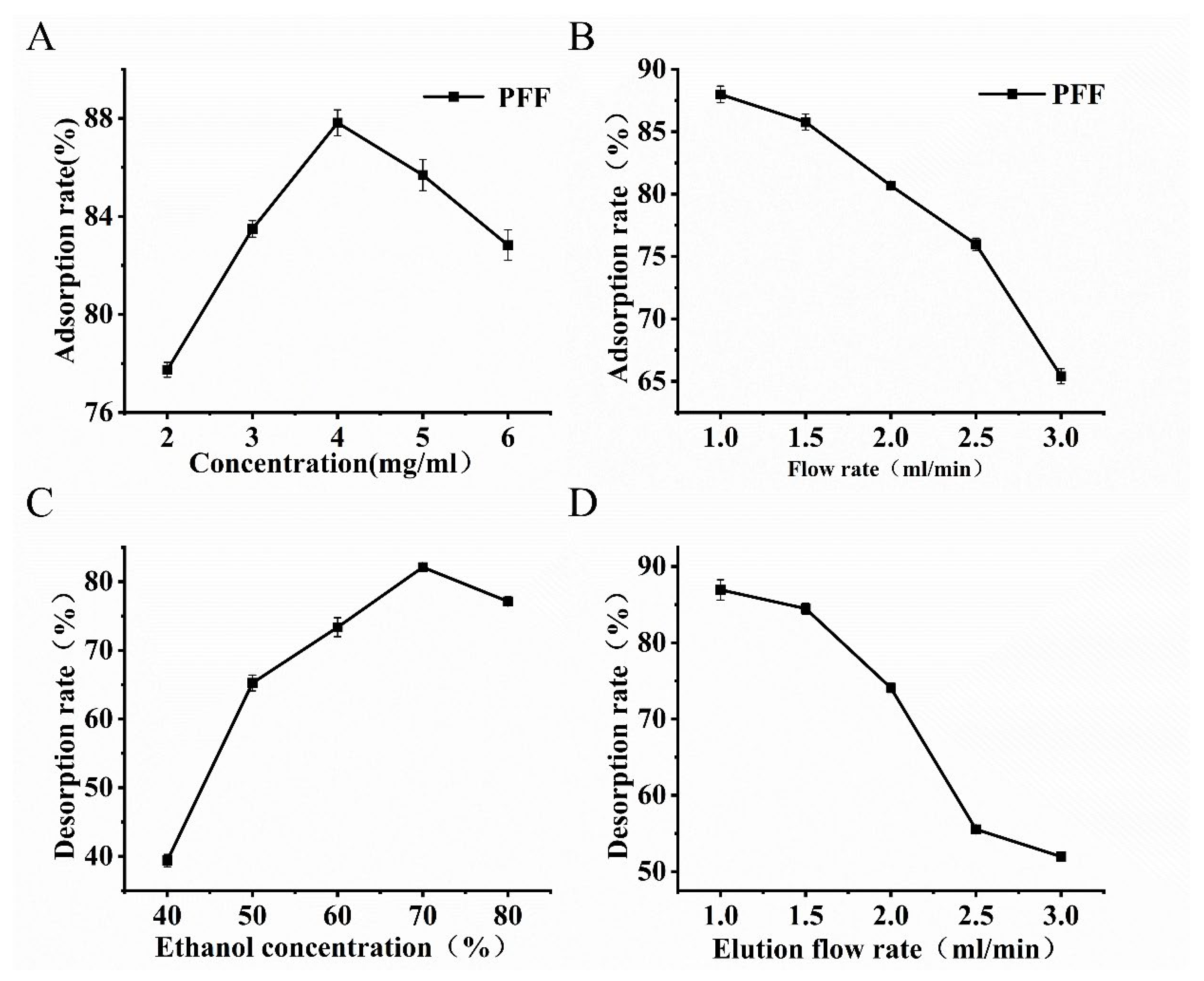 3.3. Optimization of PFF Purification Using Macroporous Resins