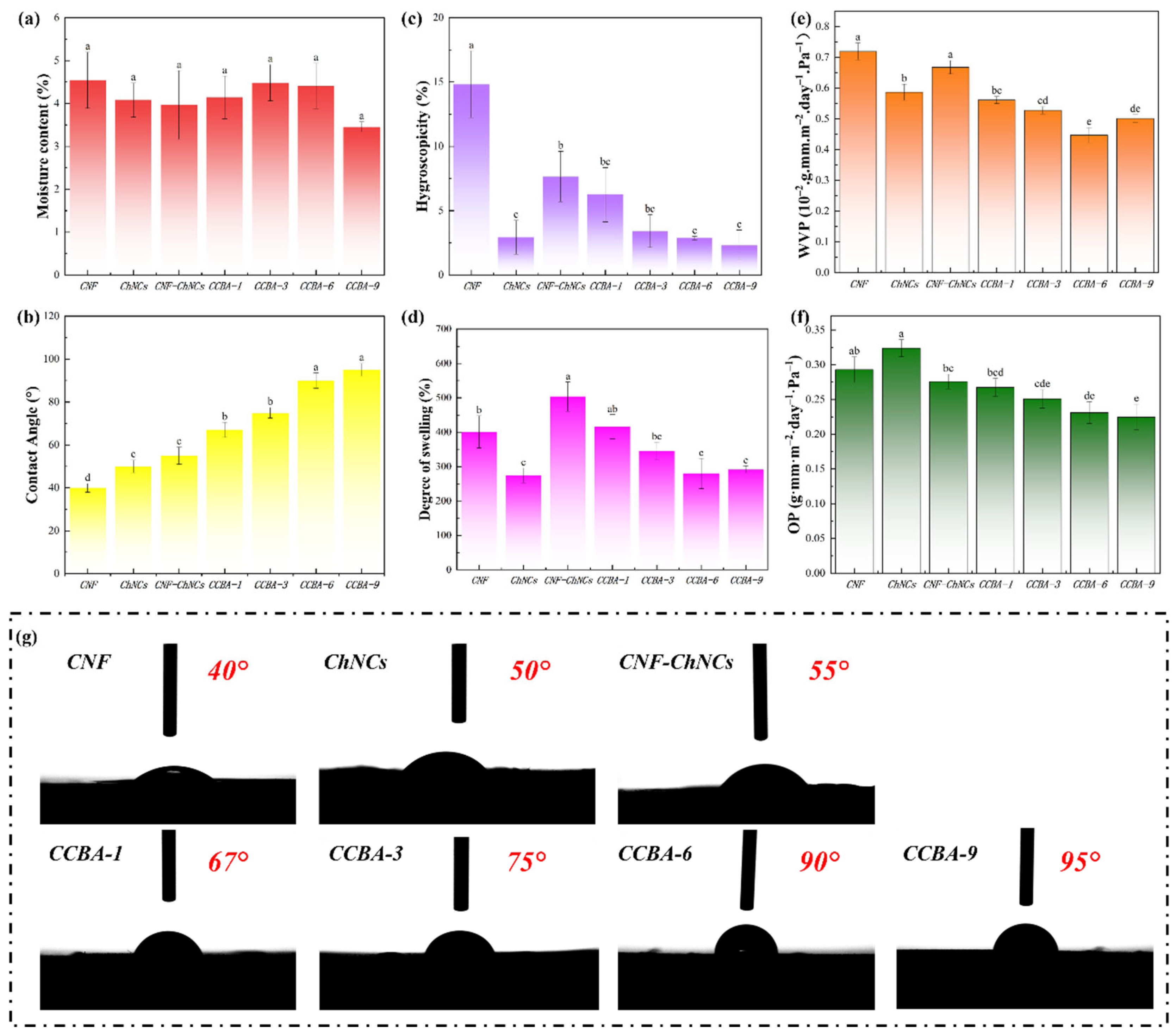 3.3. Water-Repellency Performance of CCBA-x Composite Films