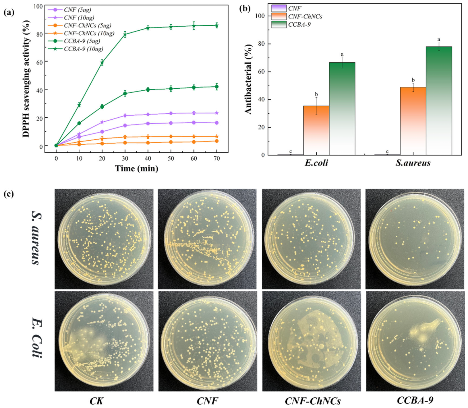 3.4. Antibacterial/Antioxidant Properties of Nanocellulose Composite Films