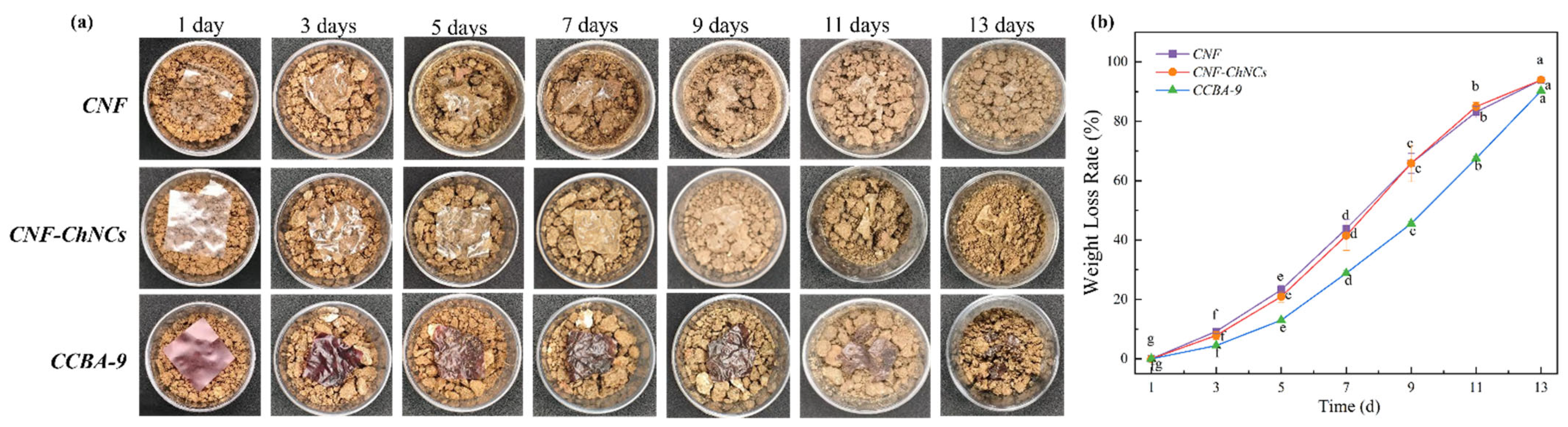 3.7. Whole Life Cycles of CCBA-x Composite Films