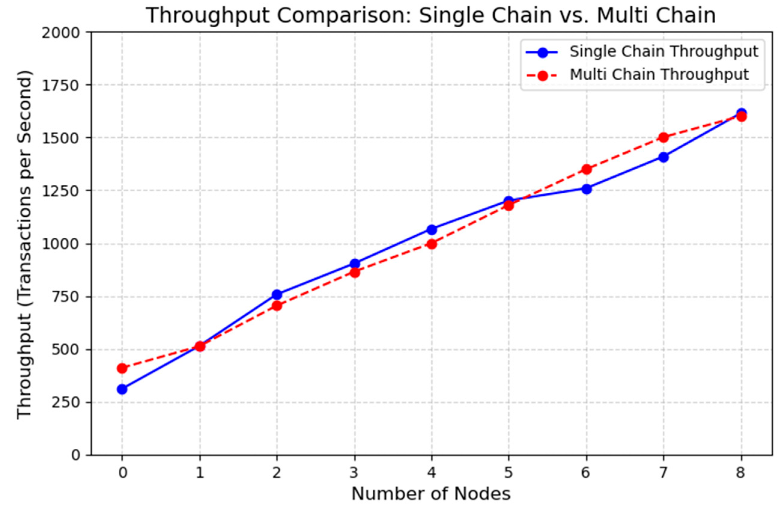 Comparison of Throughput Between Single-Chain and Block-Chain Models.