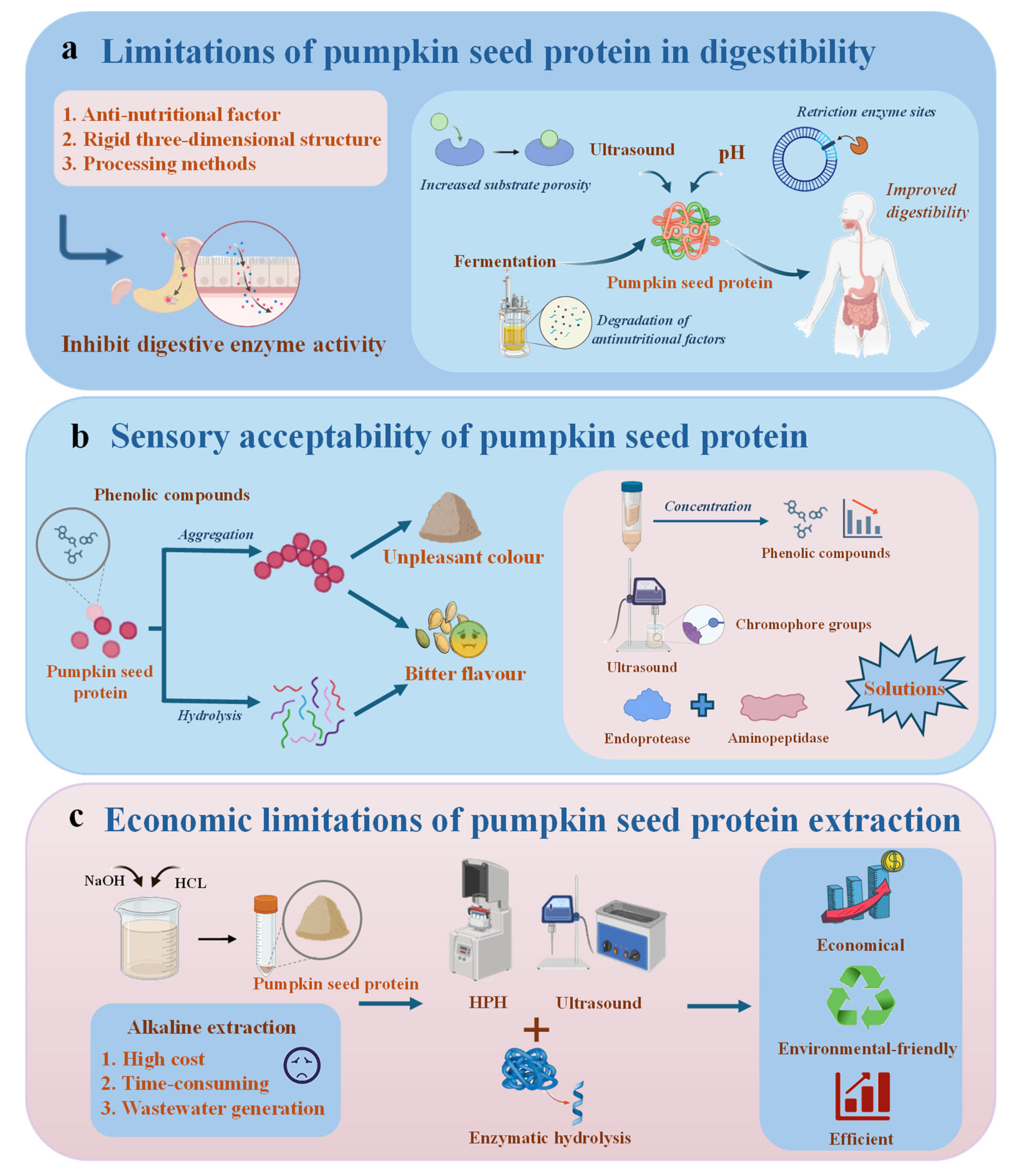 8.1. Limitations of Pumpkin Seed Protein in Digestibility