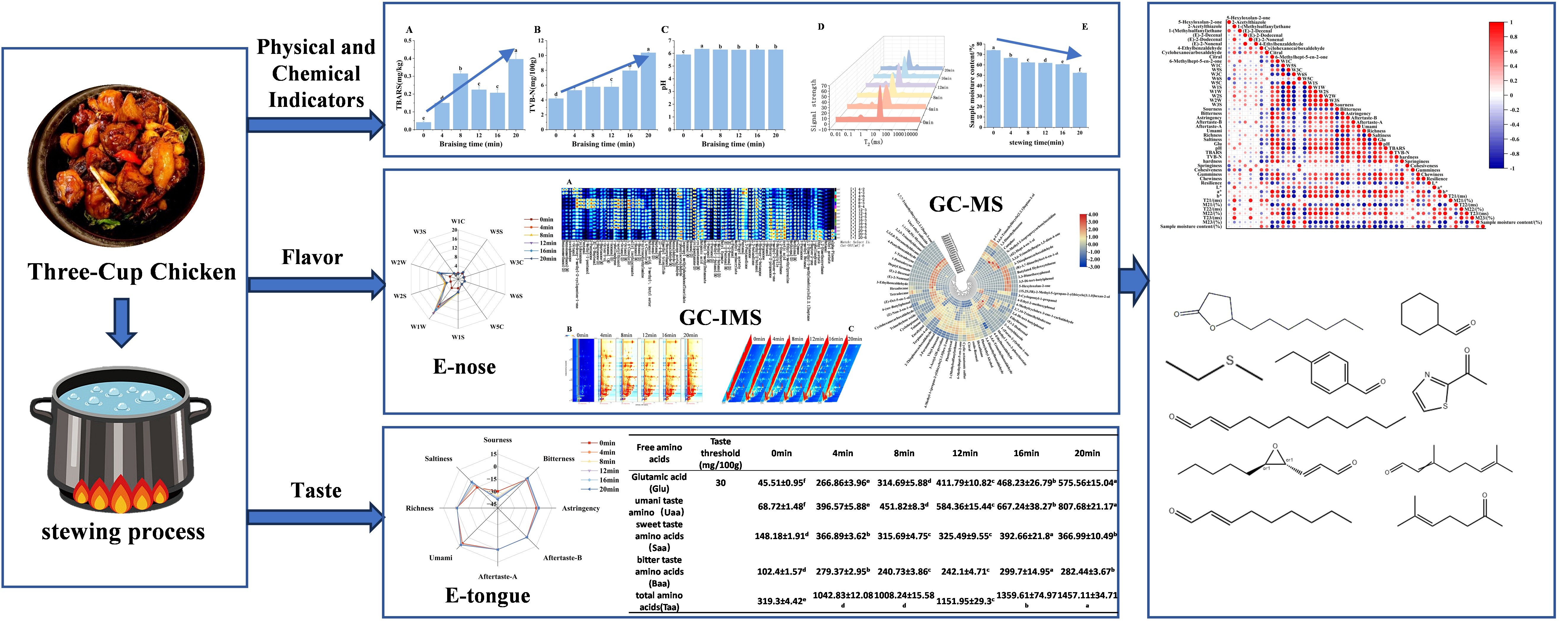 E, Q.; Wang, Y.; Liu, Y.; Long, Y.; Li, C.; Xie, J.; Yu, Q.; Chen, Y. Dynamics Evolution of Flavor and Quality Attributes in Three-Cup Chicken: Insights from Multi-Technical Analysis During Stewing. Foods 2025, 14, 3970. https://doi.org/10.3390/foods14223970