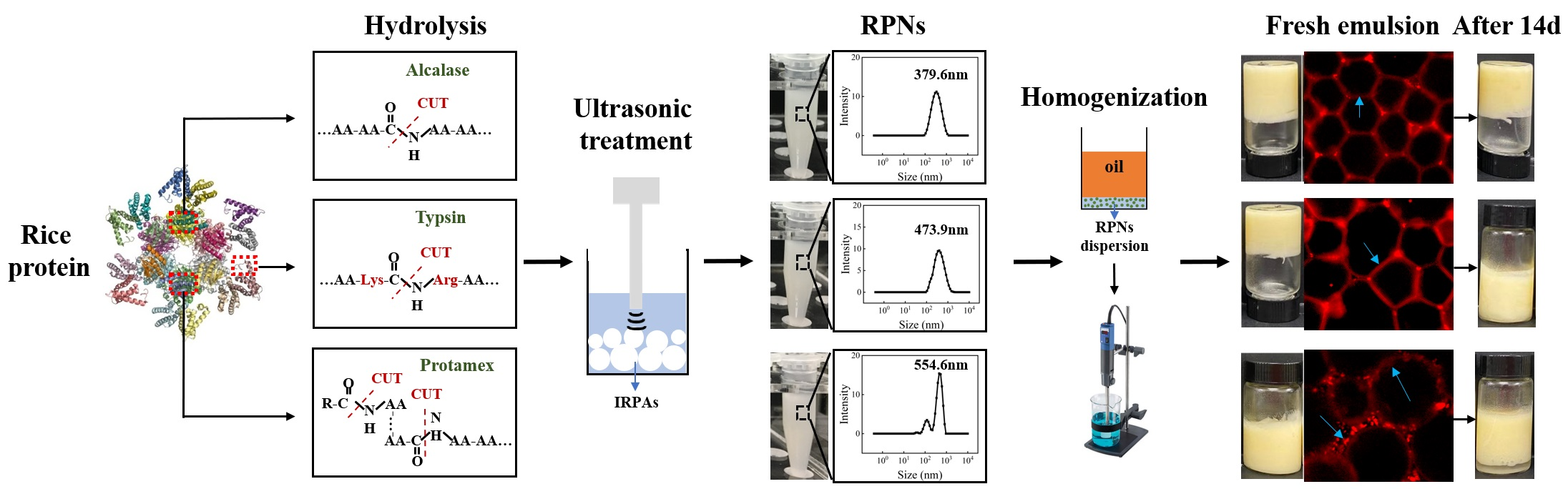 - Zhang, X.; Zuo, Z.; Yu, P.; Li, T.; Guang, M.; Chen, Z.; Wang, L. Rice peptide nanoparticle as a bifunctional food-grade Pickering stabilizer prepared by ultrasonication: Structural characteristics, antioxidant activity, and emulsifying properties. Food Chem. 2021, 343, 128545. [Google Scholar] [CrossRef] [PubMed]