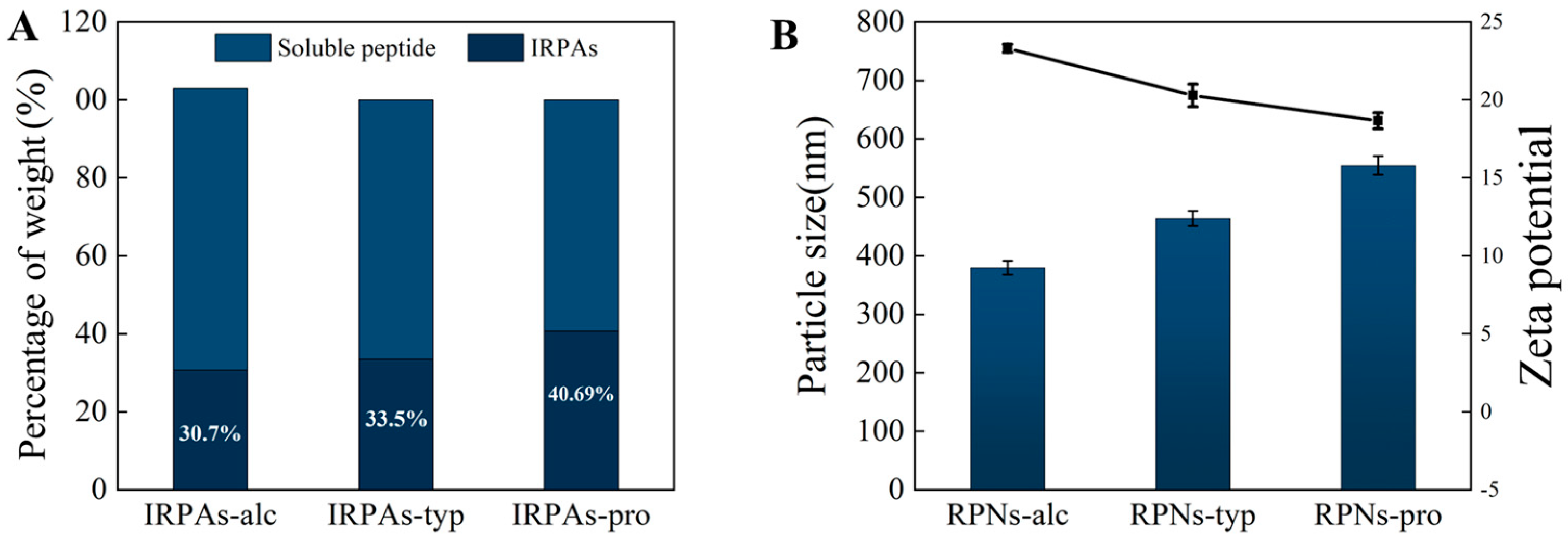 2.2. Preparation of Insoluble Rice Peptide Aggregates (IRPAs)