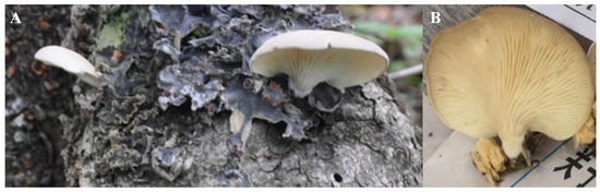 Wild fruiting bodies (A) and gills (B) of strain X21214.