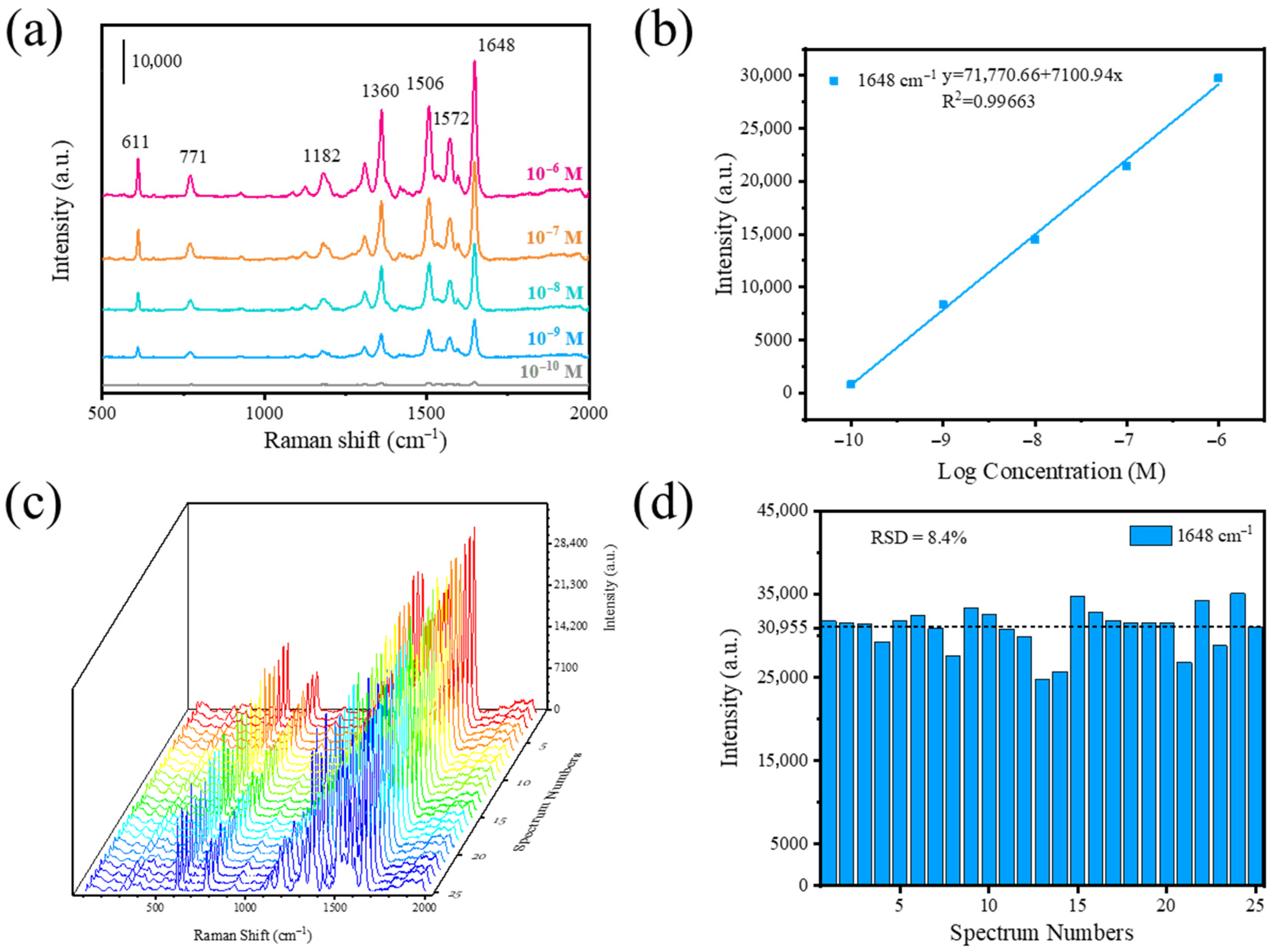 - Zhao, X.; Wang, Y.; Yao, Y.; Chen, L.; Lin, B.; Zheng, W.; Zeng, Y.; Li, L.; She, Y.; Guo, L. One-Step, On-Site Chemical Printing of a 3D Plasmon-Coupled Silver Nanocoral Substrate toward SERS-Based POCT. Anal. Chem. 2023, 95, 6836–6845. [Google Scholar] [CrossRef] [PubMed]