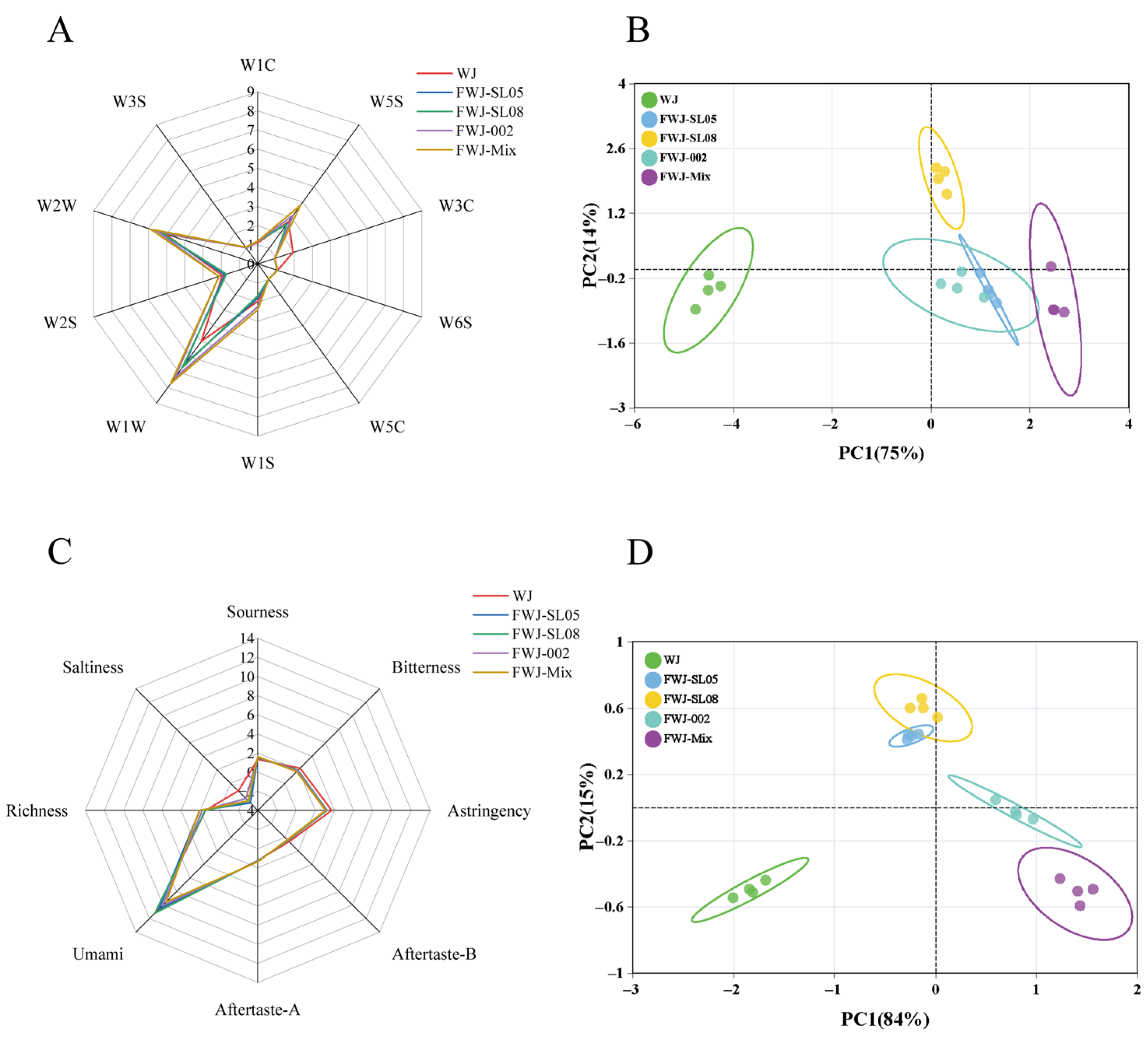 2.10. E-Tongue Analysis of FWJ