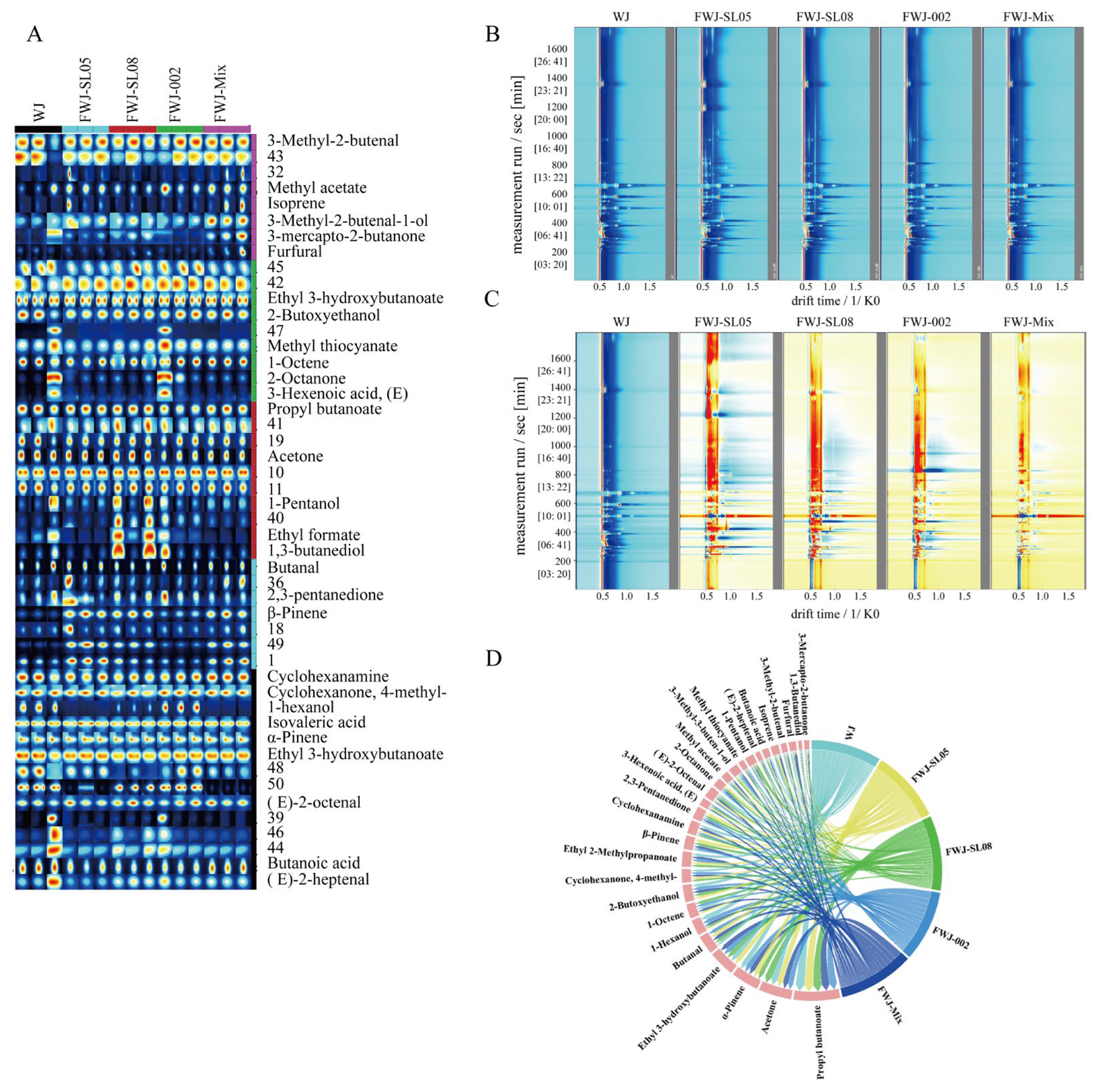 2.13. HS-GC-IMS Analysis of FWJ