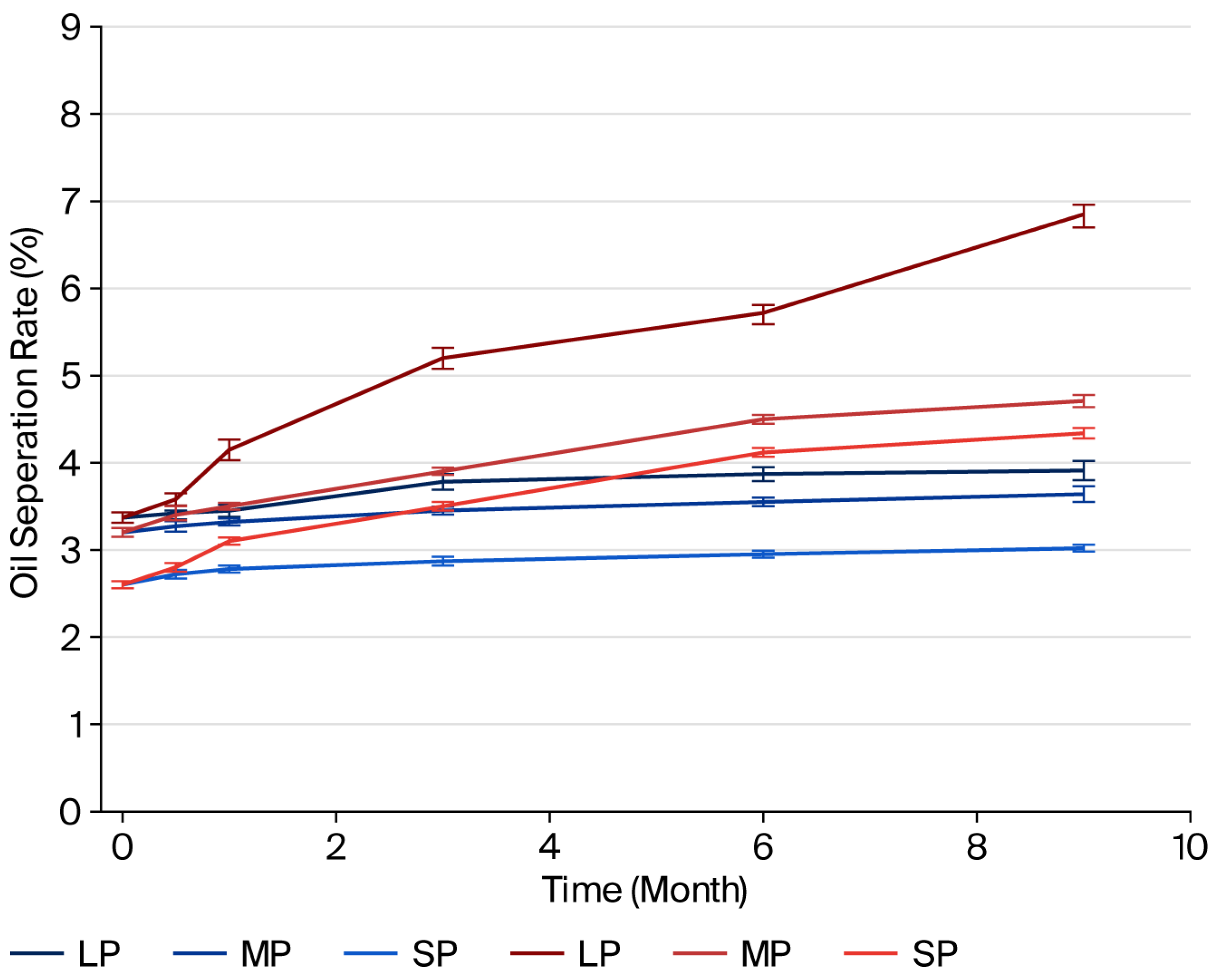 3.4. Oil Separation Rate of Pistachio Spreads and Pastes
