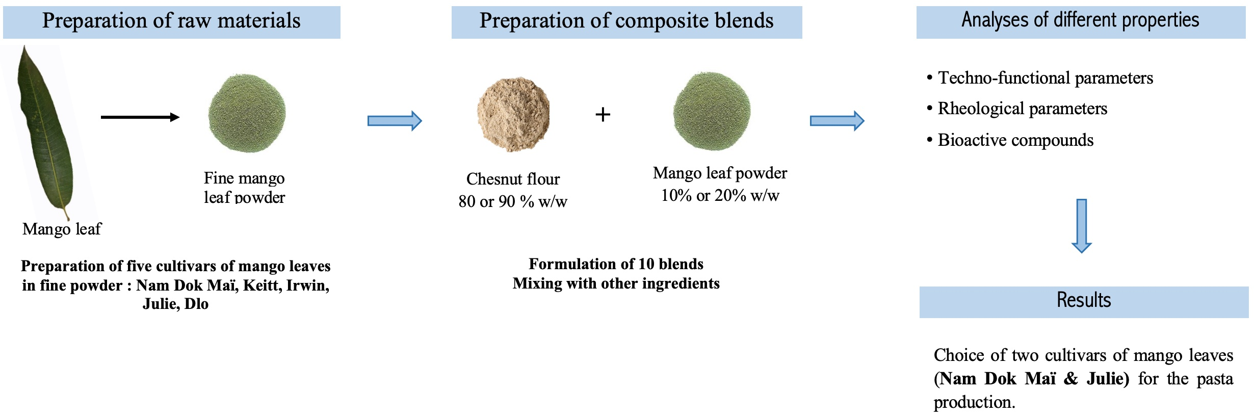 2.1. Materials and Preparation of Mango Leaf Powders and Flour Blends