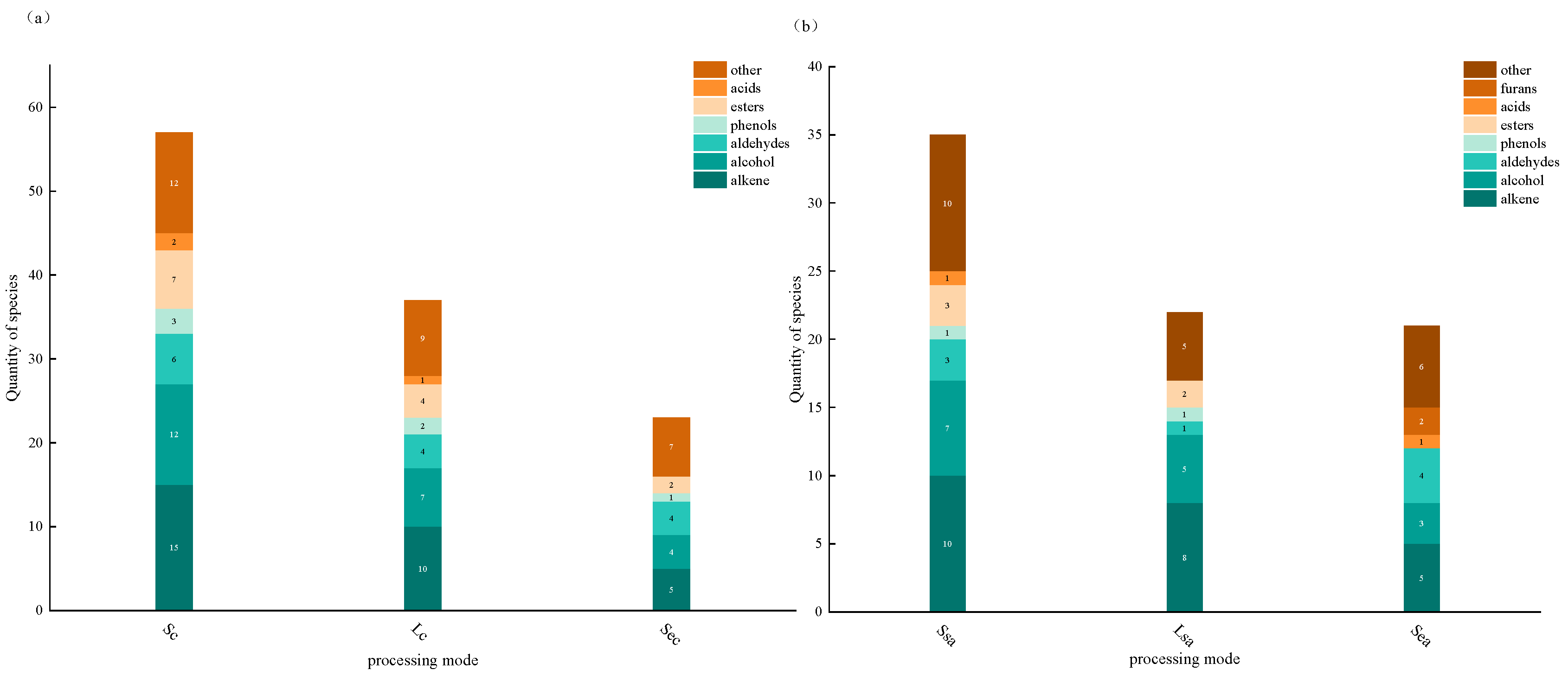 3.3. Effects of Processing Methods on Key Volatile Compounds of Spices
