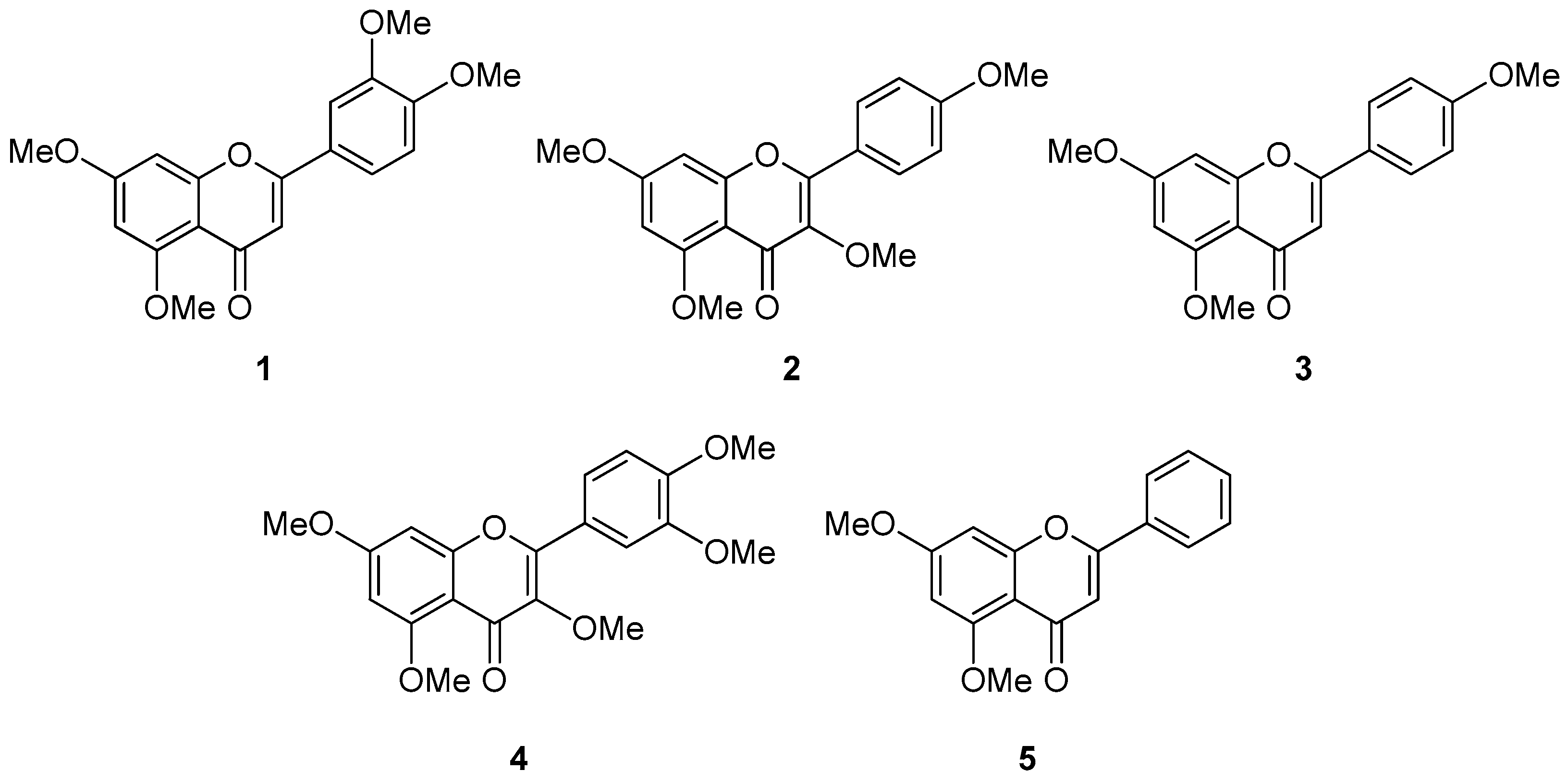 3.2. Effects of Methoxyflavones 1–5 on NHDF Viability