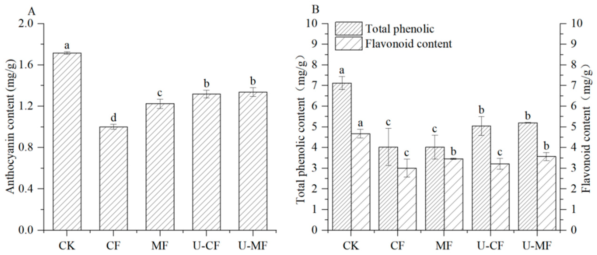 Chicago/Turabian StyleYou, Kaiyan, Xuefeng Xiong, Ziyi Wang, Qianyu Li, and Xuehui Cao. 2025. "Effect of Ultrasound Pretreatment Combined with Magnetic Field-Assisted Freezing on Bioactive Compounds and Antioxidant Capacity of Blueberry" Foods 14, no. 23: 4013. https://doi.org/10.3390/foods14234013