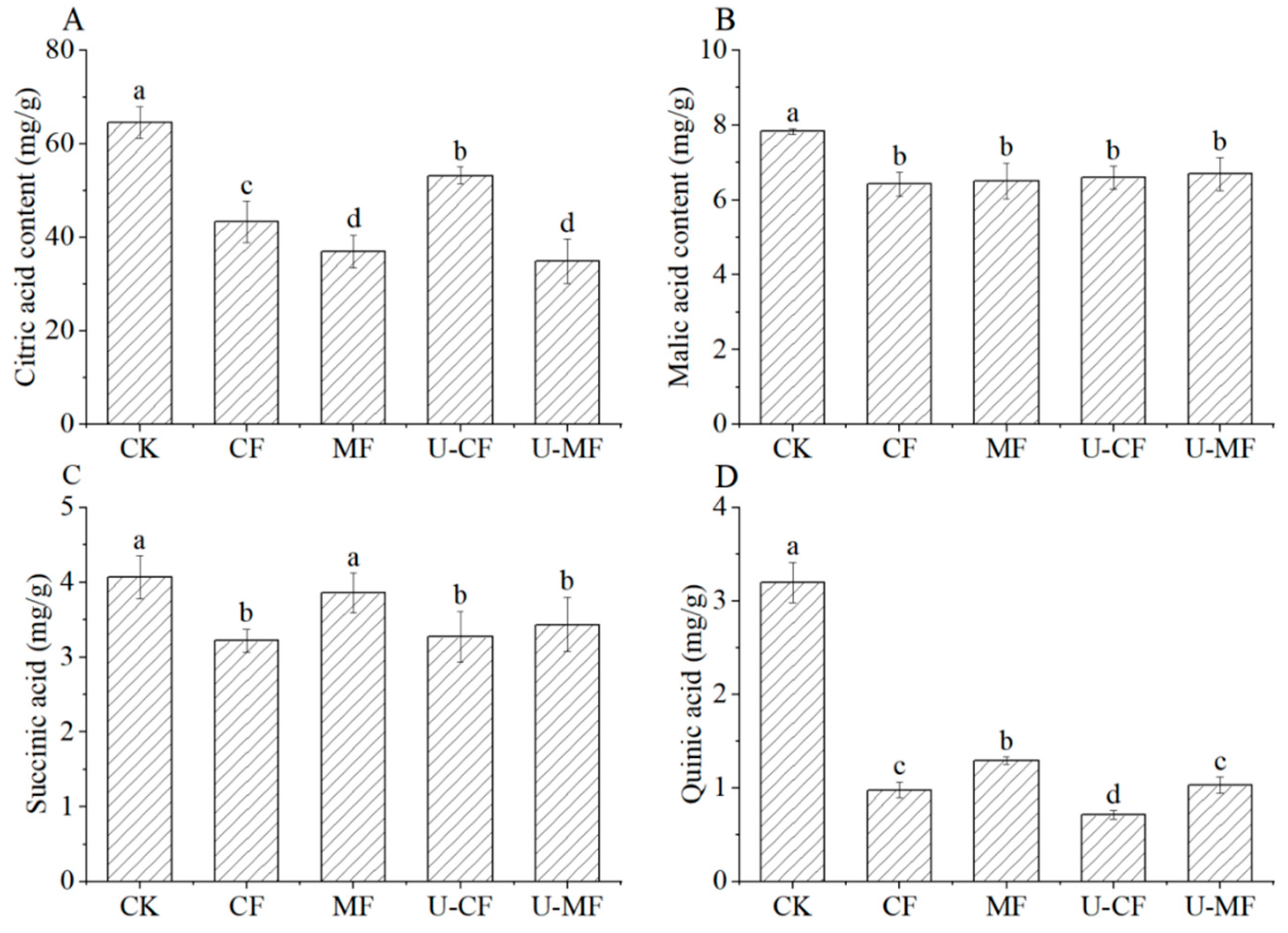 | CK | 10.91 ± 0.29 c | 0.66 ± 0.05 a | 22.44 ± 1.56 a | 5.68 ± 0.26 c |