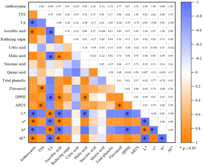 2.5. Total Soluble Solid, Titratable Acidity, Ascorbic Acid, and Reducing Sugar Contents