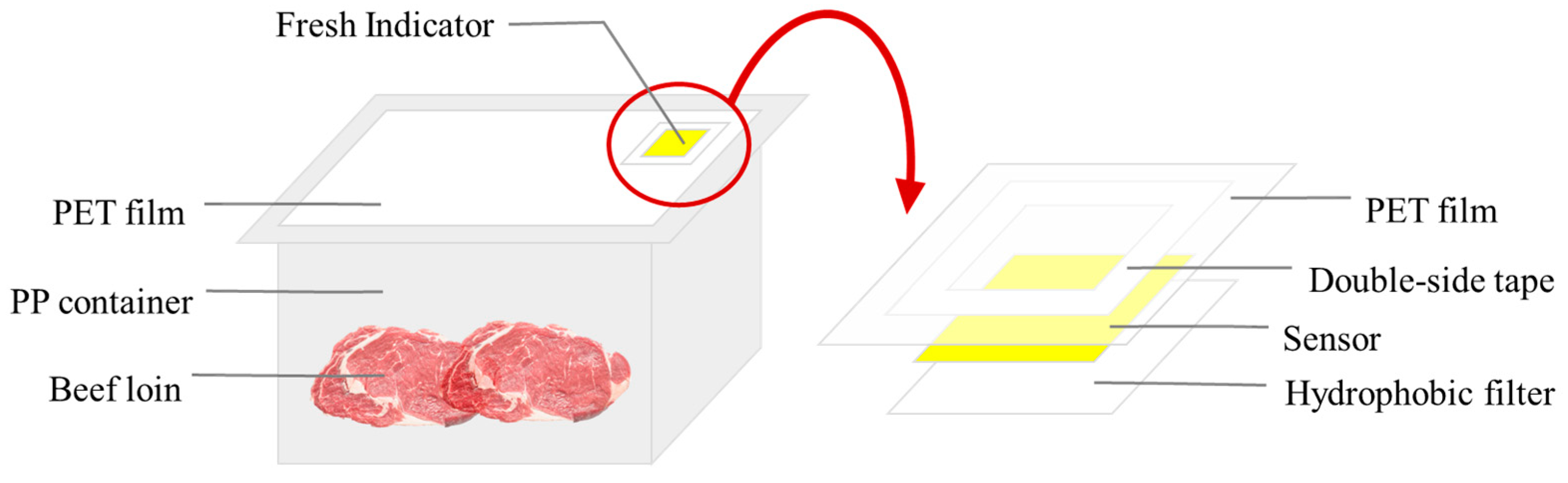 A typical freshness indicator consists of a matrix including a polymer, substrate, and lamination layer with a colorant, and may also contain a plasticizer to improve film flexibility [6,7,8].