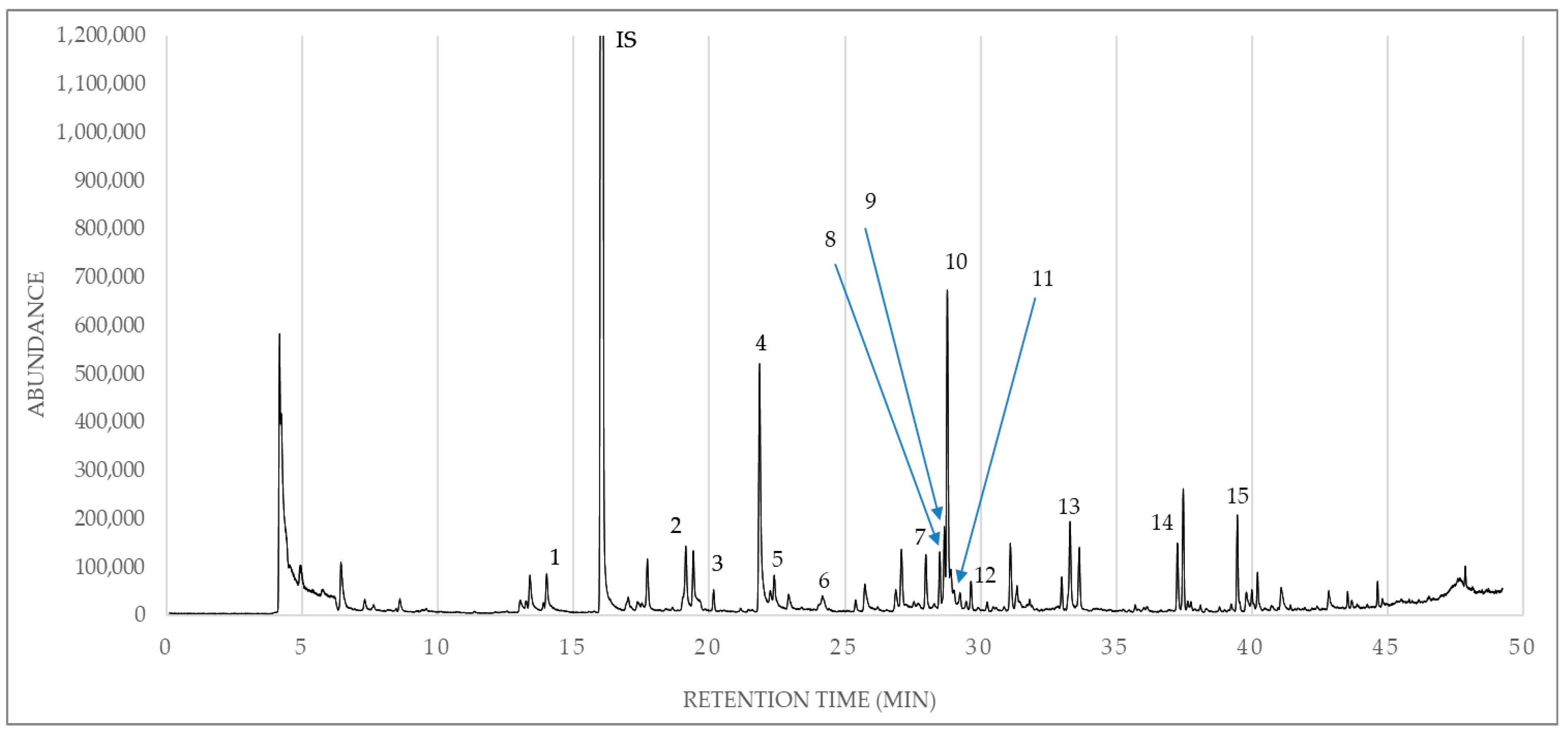 2.3.2. GC-MS Instrumentation and Conditions of Analysis
