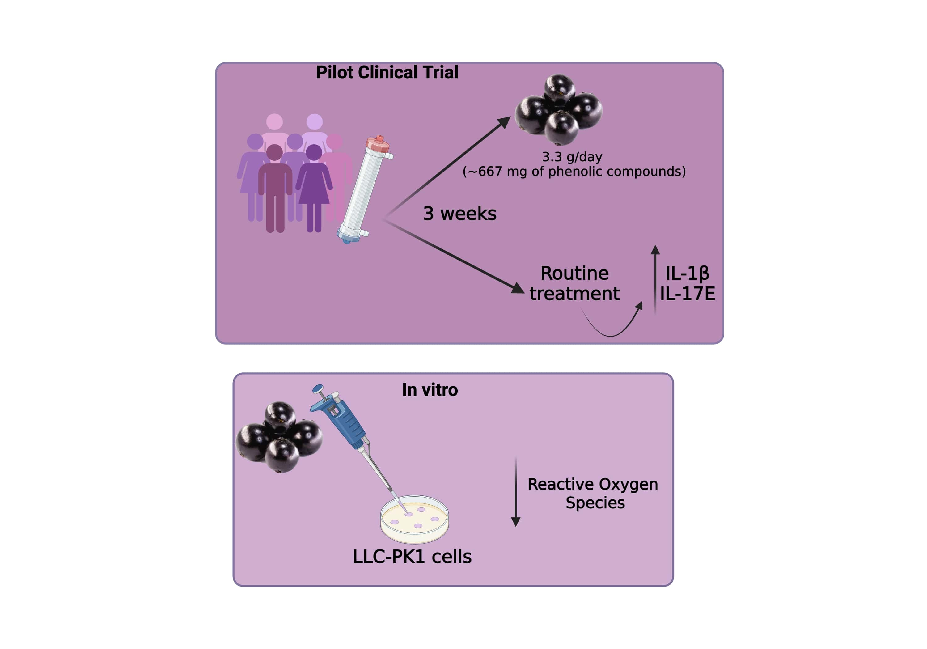Lima LS, Brito JSd, Ribeiro-Alves M, Coutinho-Wolino KS, Duarte RdSP, Valverde RHF, Einicker-Lamas M, Berretta AA, Sanz CL, Nakao LS, et al. Effects of the Brazilian Native Fruit Jaboticaba (Plinia cauliflora) Peel on Inflammatory and Oxidative Stress Pathways: Insights from a Pilot Study in Hemodialysis Patients and Renal Cell Models. Foods. 2025; 14(23):4030. https://doi.org/10.3390/foods14234030