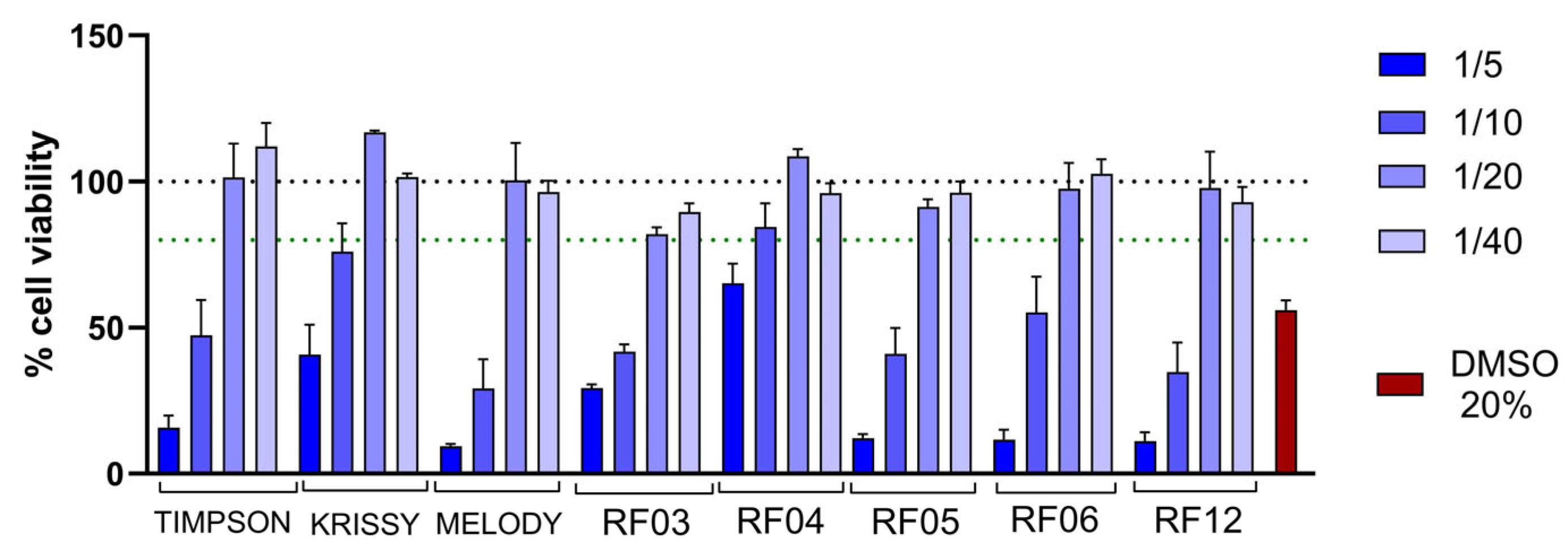 | RF03 | 259.3 ± 12.9 c | 113.5 ± 5.7 h | 180.6 ± 9.0 ij | 181.6 ± 9.1 f |